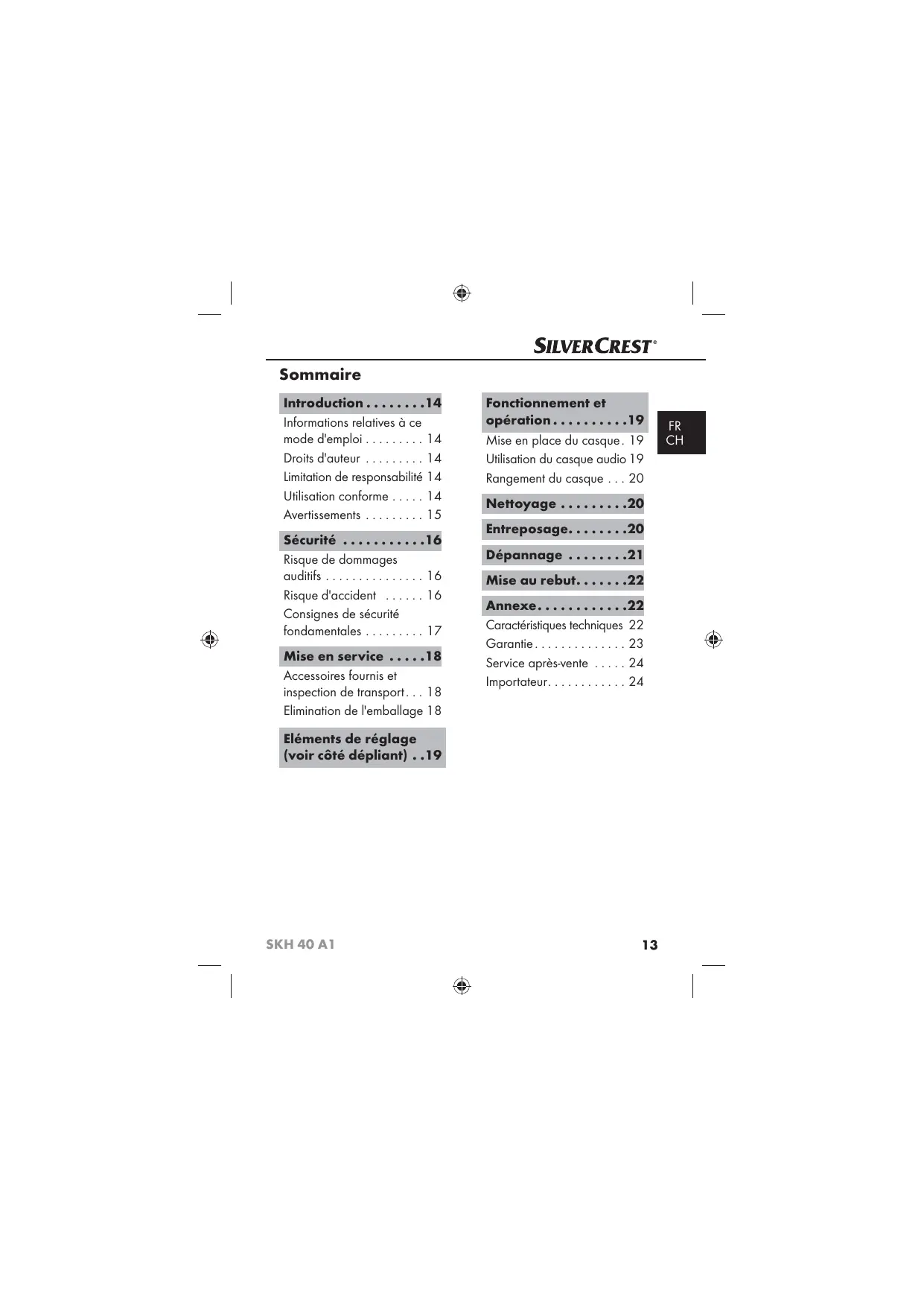 MODE D'EMPLOI SKH 40 A1 SILVERCREST