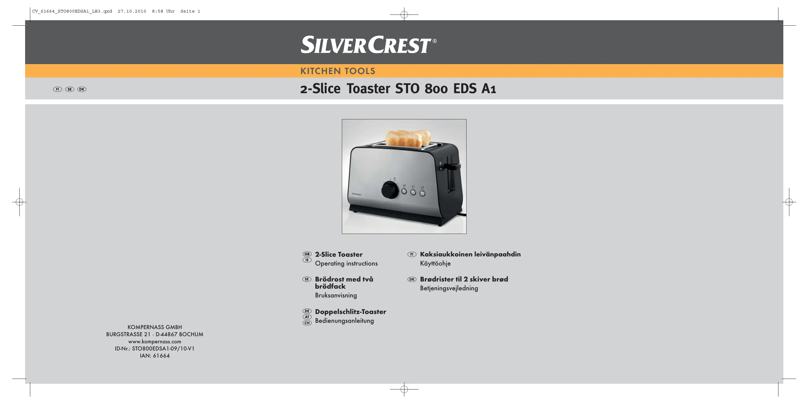 STO 800 EDS A1 2-SLICE TOASTER - Grille-pain SILVERCREST - Notice d'utilisation et mode d'emploi gratuit