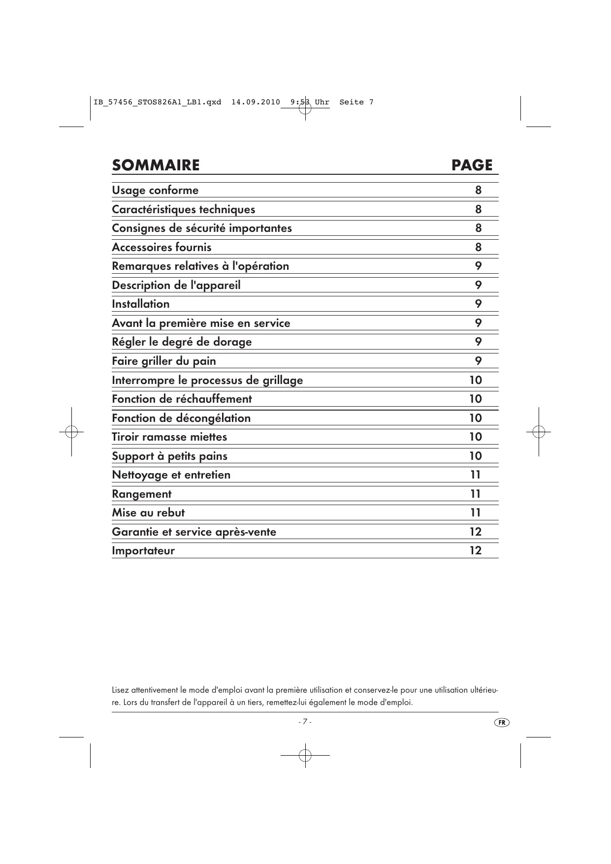 - Videz le tiroir ramasse miettes 8, à intervalles réguliers, afin d'éviter tout risque d'incendie. L'appareil ne doit jamais être jeté dans la poubelle domestique normale. Ce produit est soumis à la directive européenne 2002/96/EC. Remettez l'appareil destiné au recyclage à une entreprise spécialisée ou au centre de recyclage de votre commune. Respectez la réglementation en vigueur. En cas de doutes, contactez votre organisation de recyclage. Procédez à une élimination des matériaux d'emballage respectueuse de l'environnement.