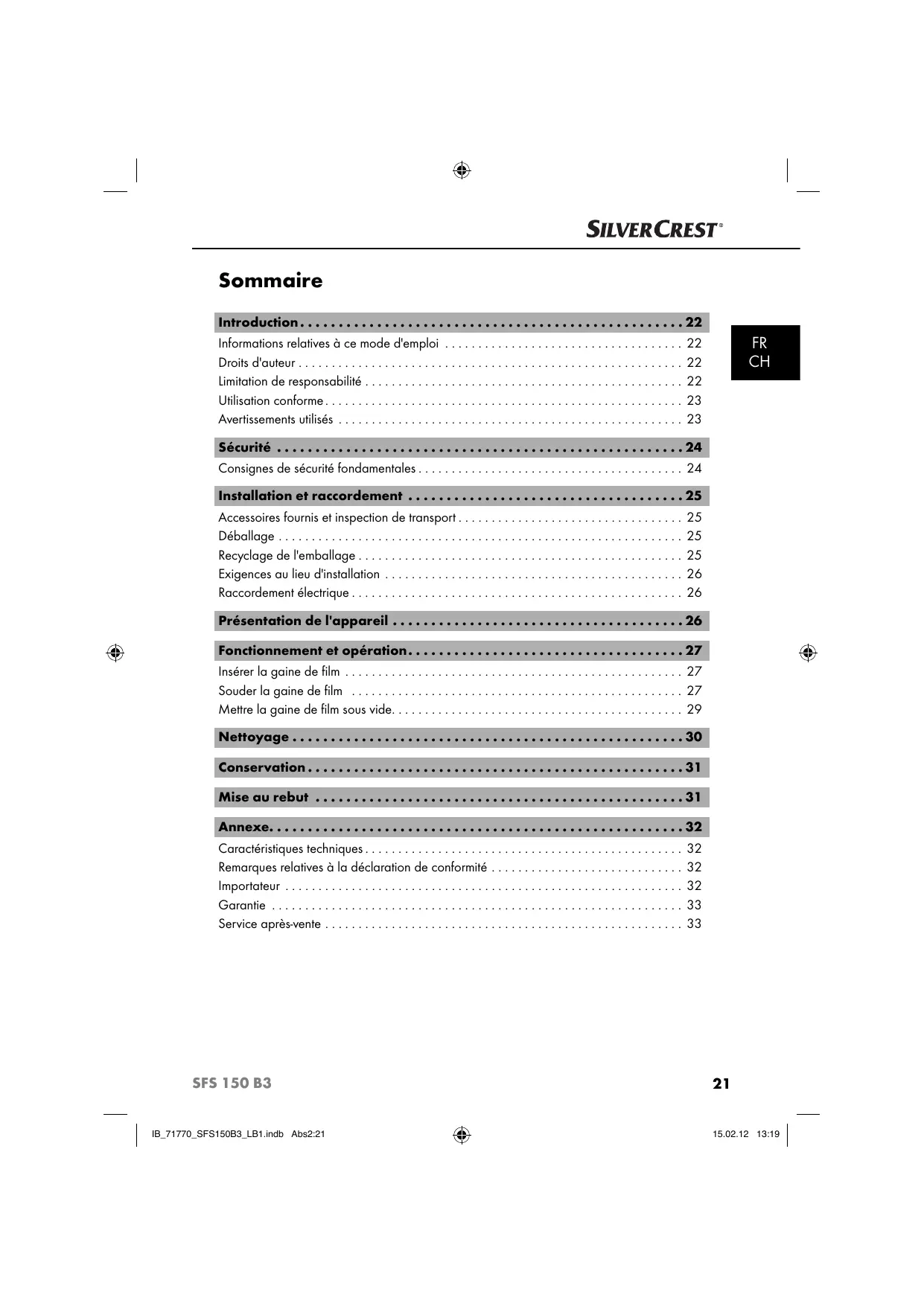 SFS 150 B3 - SILVERCREST - Notice d'utilisation et mode d'emploi gratuit