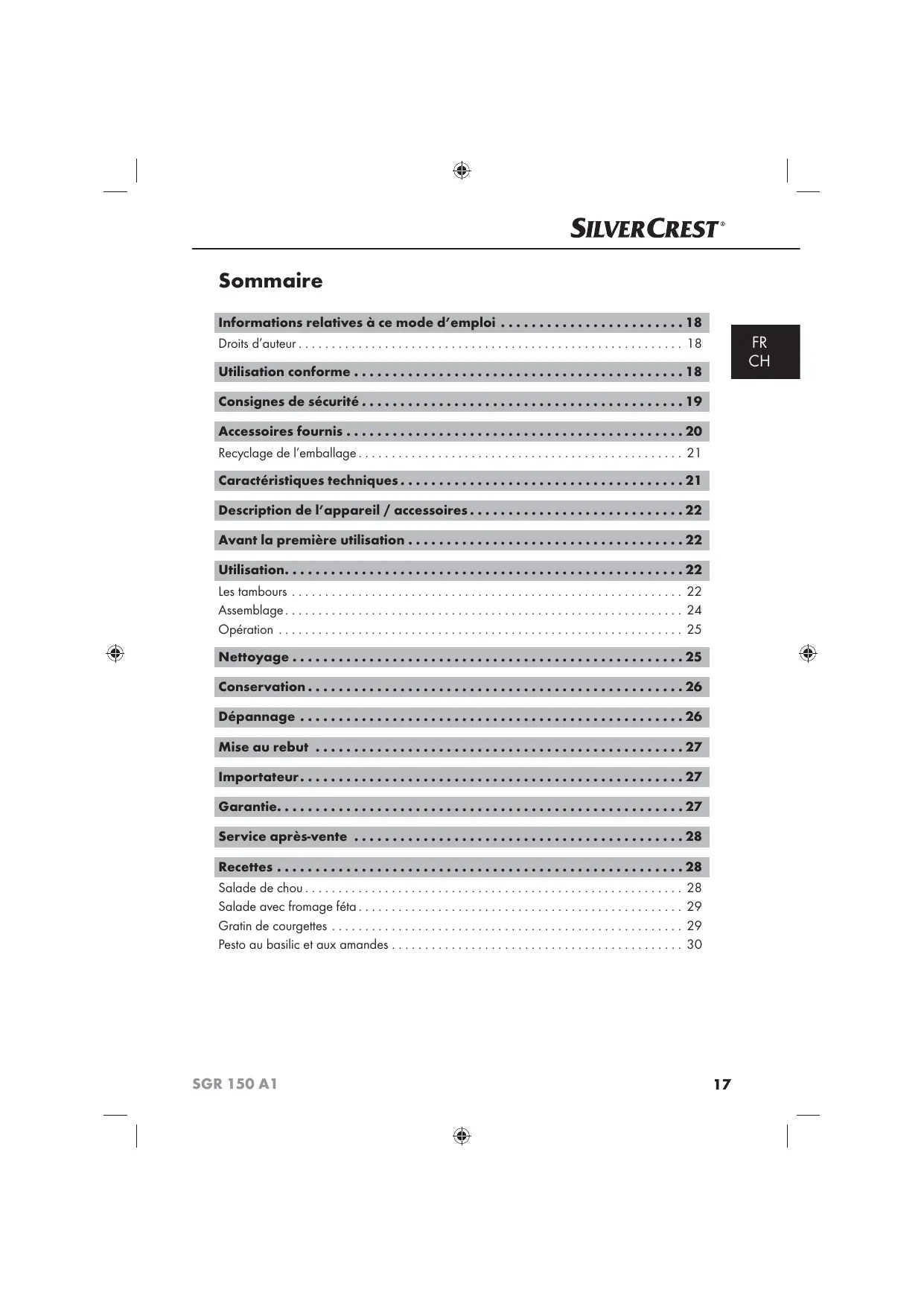 Retrouvez gratuitement la notice de l'appareil SGR 150 A1 SILVERCREST au format PDF.