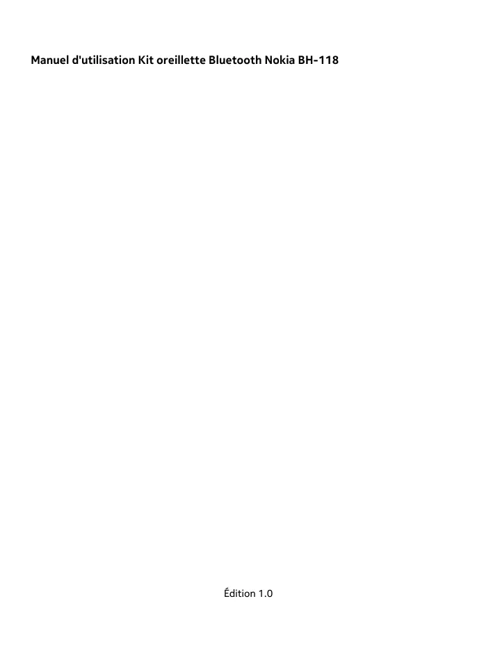 Manuel d'utilisation Kit oreillette Bluetooth Nokia BH-118 Édition 1.0