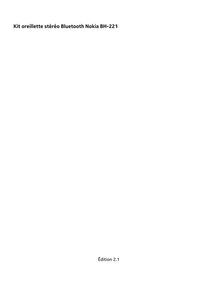 BH-221 - Écouteurs sans fil NOKIA - Notice d'utilisation et mode d'emploi gratuit