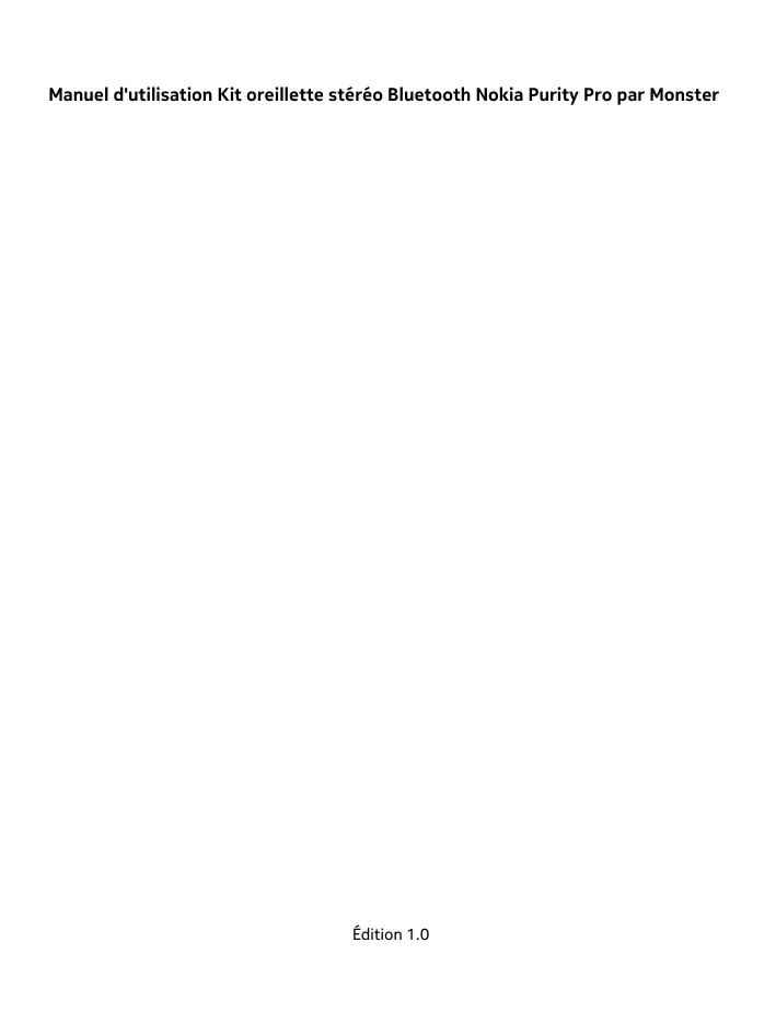 Manuel d'utilisation Kit oreillette stéreo Bluetooth Nokia Purity Pro par Monster