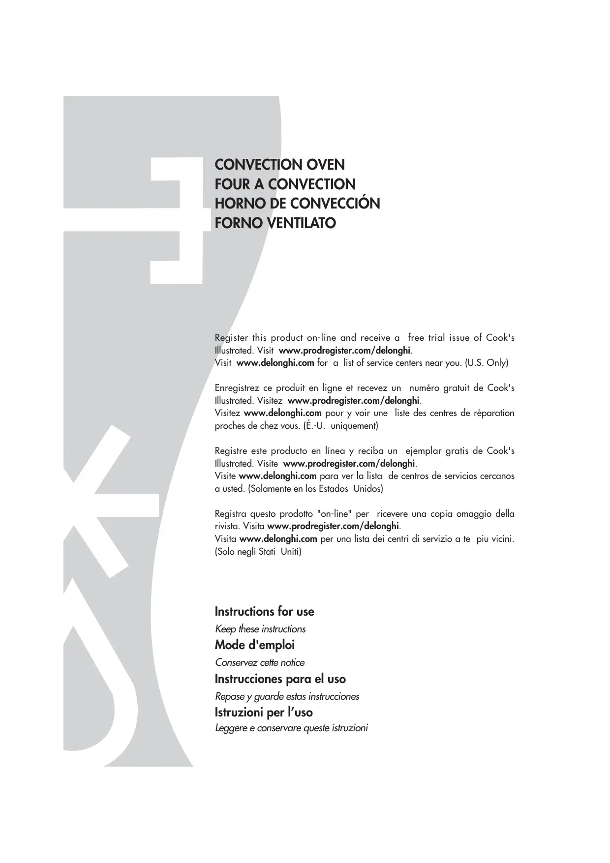 Enregistrez ce produit en ligne et recevez un numéro gratuit de Cook's Illustrated. Visitez www.prodregister.com/delonghi.