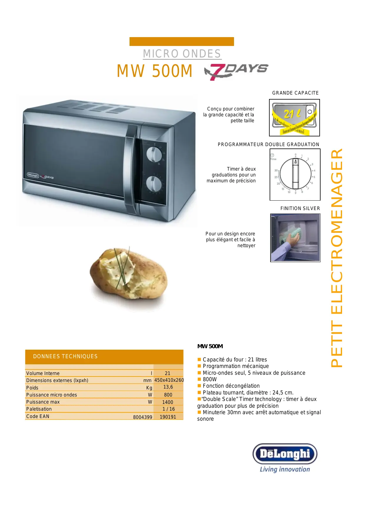 Retrouvez gratuitement la notice de l'appareil MW 500M DELONGHI au format PDF.