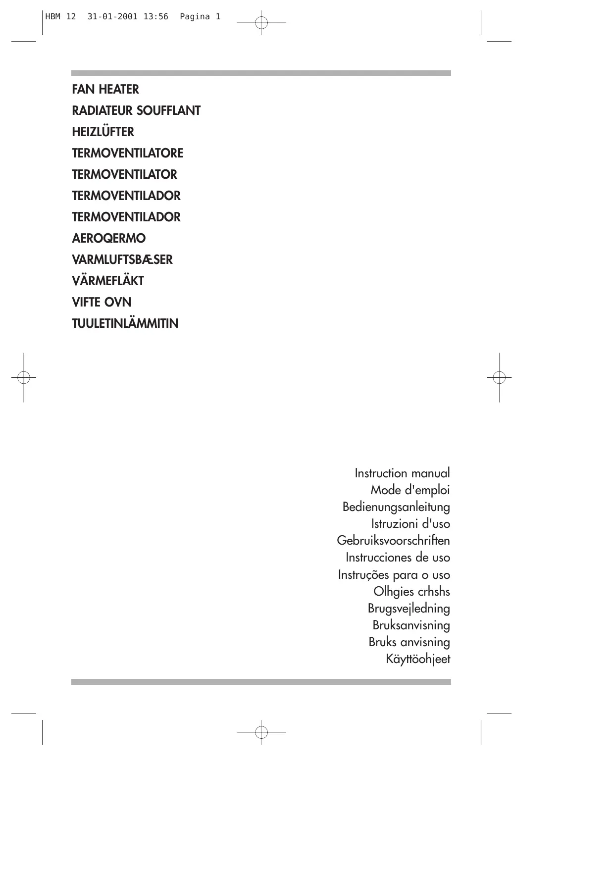 HBM 12 31-01-2001 13:56 Pagina 7 Fonction hors-gel Tourner le bouton sur la position antigel . Ainsi réglé, l’appareil s’allumera automatiquement chaque fois que la température du mileu descendra en s’approchant de 5°C et le local restera à une température de quelques degrés audessus de zéro. Service d’été (uniquement ventilation) Tourner le bouton dans le sens des aiguilles d’une montre sur la position quement ventilation) (fig. 5). De cette façon seuls les ventilateurs se mettront en marche.. “service d’été” (uni- Débranchement de l'appareil Pour éteindre l'appareil, ramenez la manette du sélecteur des fonctions + thermostat sur la position "O" (fig. 5). Si l'appareil n'est pas utilisé pendant de longues périodes, il est conseillé de débrancher la fiche de la prise de courant. Fonction séchage