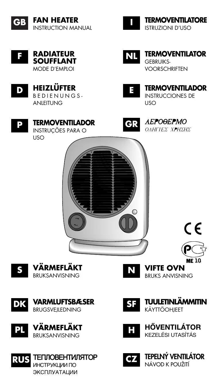 Pour programmer le chauffage, procédez de la manière suivante: - Regardez l'heure sur votre montre. Supposons qu'il soit 18 heures, tournez dans le sens des aiguil. les d'une montre le disque numéroté du programmateur afin de placer le numéro 18 en face du symbole de référence @ imprimé sur la façade de l'appareil - Réglez les périodes de temps de fonctionnement souhaitées, en tirant vers l'extérieur les dents de la minuterie. Vous observerez alors des secteurs correspondants aux horaires de fonctionnement. - Une fois réglé, l'appareil fonctionnera automatiquement tous les jours aux heures programmées remarque importante: pour ne pas décaler le programme réglé, laissez toujours la fiche branchée dans la prise de courant] = Pour modifier la programmation, remettez toujours les dents de la minuterie dans la position initiale et réglez les nouvelles périodes de fonctionnement. = Chaque dent de la minuterie correspond à une période de 30 minutes. = Exclusion du programme: afin d'obtenir le fonctionnement de l'appareil en dehors des temps programmés, placez toutes les dents de la minuterie vers l'extérieur. = Dispositif antigel: en plaçant le bouton du thermostat sur la position X, vous sélectionnez la fonction antigel de l'appareil qui maintiendra ainsi la pièce à une température d'environ 5°C avec une consommation d'énergie minimale ENTRETIEN = Débrancher toujours l'appareil, avant toute opération de nettoyage. -__ Nettoyer régulièrement les grilles d'entrée et de soi d'utilisation de l'appareil avec un aspirateur. - Ne jamais utiliser des poudres abrasives ou des solvants. ATTENTION = Ne pas utiliser l'appareil tout près de douches, baïgnoires, éviers, piscines, etc. = N'ufliser l'appareil qu'en position verticale. = Ne pas ufliser l'appareil pour sécher le linge, ne pas obstuer les grilles d'entrée et de sortie de l'air (danger de surchauffage] = Ne laisser aucun meuble ou autre objet à une distance de l'appareil inférieure à 50 cm. - En utilisant l'appareil en version portafive, ne jamais le mettre en service en faisant reposer la partie arrière contre les murs, les meubles, les rideaux etc. - L'appareil doit être installé de façon que les interrupteurs et les autres commandes soient à l'abri de ceux qui xilisent la baignoire ou la douche. - Si le cable d'alimentation est endommagé, maintenance où par une personne de qualification similaire, afin d'éviter un danger. = Cet appareil ne doit pas être placé juste au-dessous d'une prise de courant placée à poste fixe. - Ne jamais couvrir l'appareil pendant le fonctionnement, pour éviter tout risque d'incendie. - Ne jamais utiliser cet appareil dans une pièce dont la surface de base est inférieure à 4 m' Un dispositif de sécurité interrompe le fonctionnement du thermovenfilateur en cas de surchauffage acci dentel (par ex. obstruction des grilles d'entrée et de sortie de l'air, le moteur qui ne tourne pas ou qui tourne len- temen. Pour rétablir le fonctionnement, il est nécessaire de débrancher la fiche pendant quelques minutes, suppri- mer la cause du surchauffage et réinsérer la fiche dans la prise de courant. FX Attentio: de l'air pendant la période il doit être changé par le fabricant, son service de pas couvrir l'appareil afin d'éviter tout risque de surchauffage