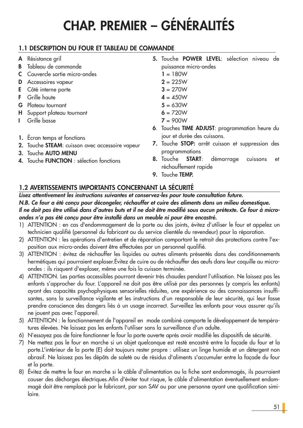 1.1 Description du four et tableau de commande . 51