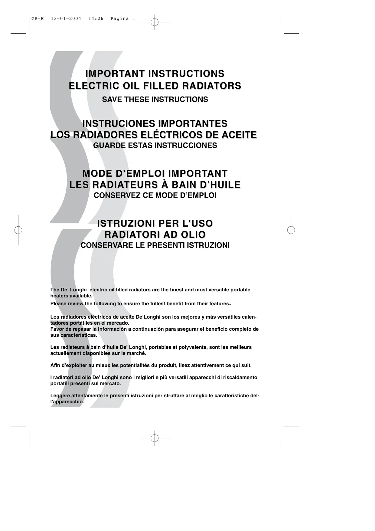 EW 6507 - Radiateur électrique DELONGHI - Notice d'utilisation et mode d'emploi gratuit