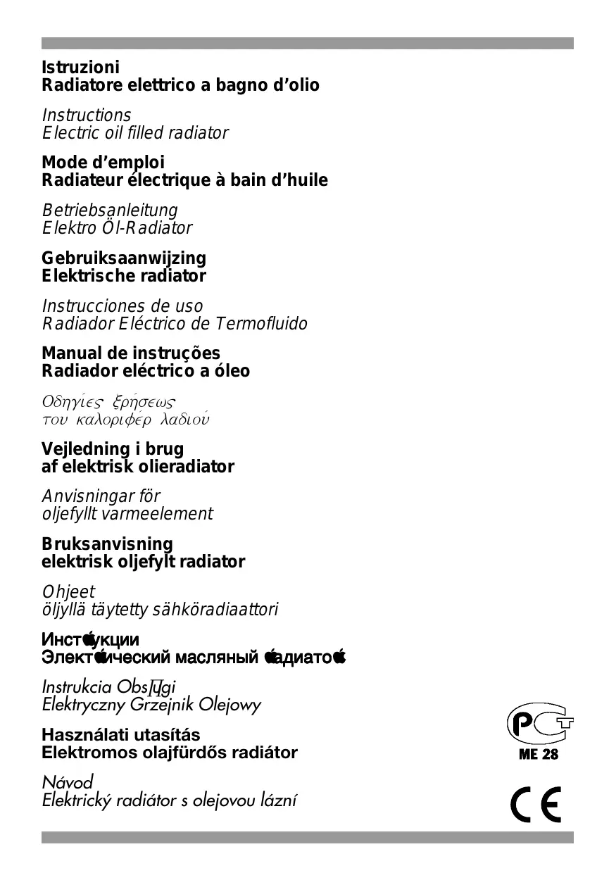 Instructions Electric oil filled radiator Mode d’emploi Radiateur électrique à bain d’huile