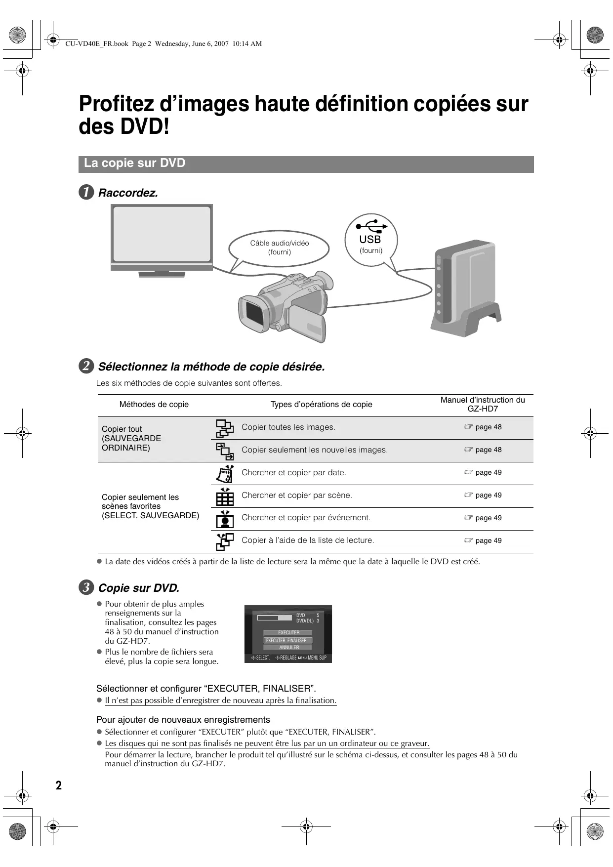 Pour obtenir de plus amples renseignements sur la finalisation, consultez les pages 48 à 50 du manuel d'instruction du GZ-HD7.