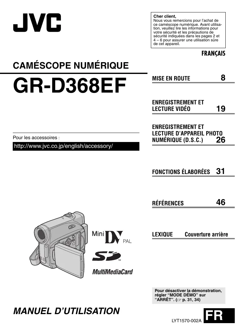 Retrouvez gratuitement la notice de l'appareil GR-D368EF JVC au format PDF.