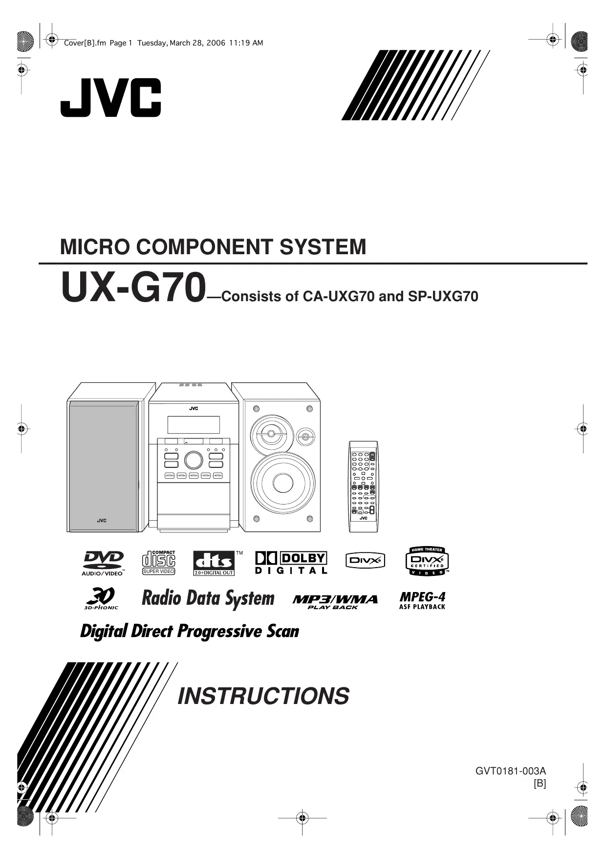 Téléchargez la notice de votre Système audio compact au format PDF gratuitement ! Retrouvez votre notice UX-G70 - JVC et reprennez votre appareil électronique en main. Sur cette page sont publiés tous les documents nécessaires à l'utilisation de votre appareil UX-G70 de la marque JVC.