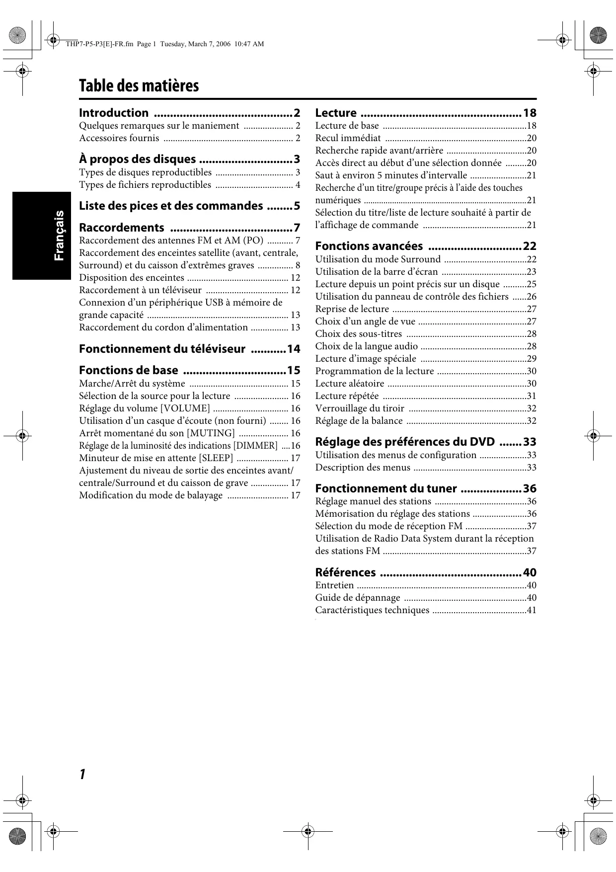 - THP7-P5-P3[E]-FR.fm Page 1 Tuesday, March 7, 2006 10:47 AM Table des matières Introduction p. 2