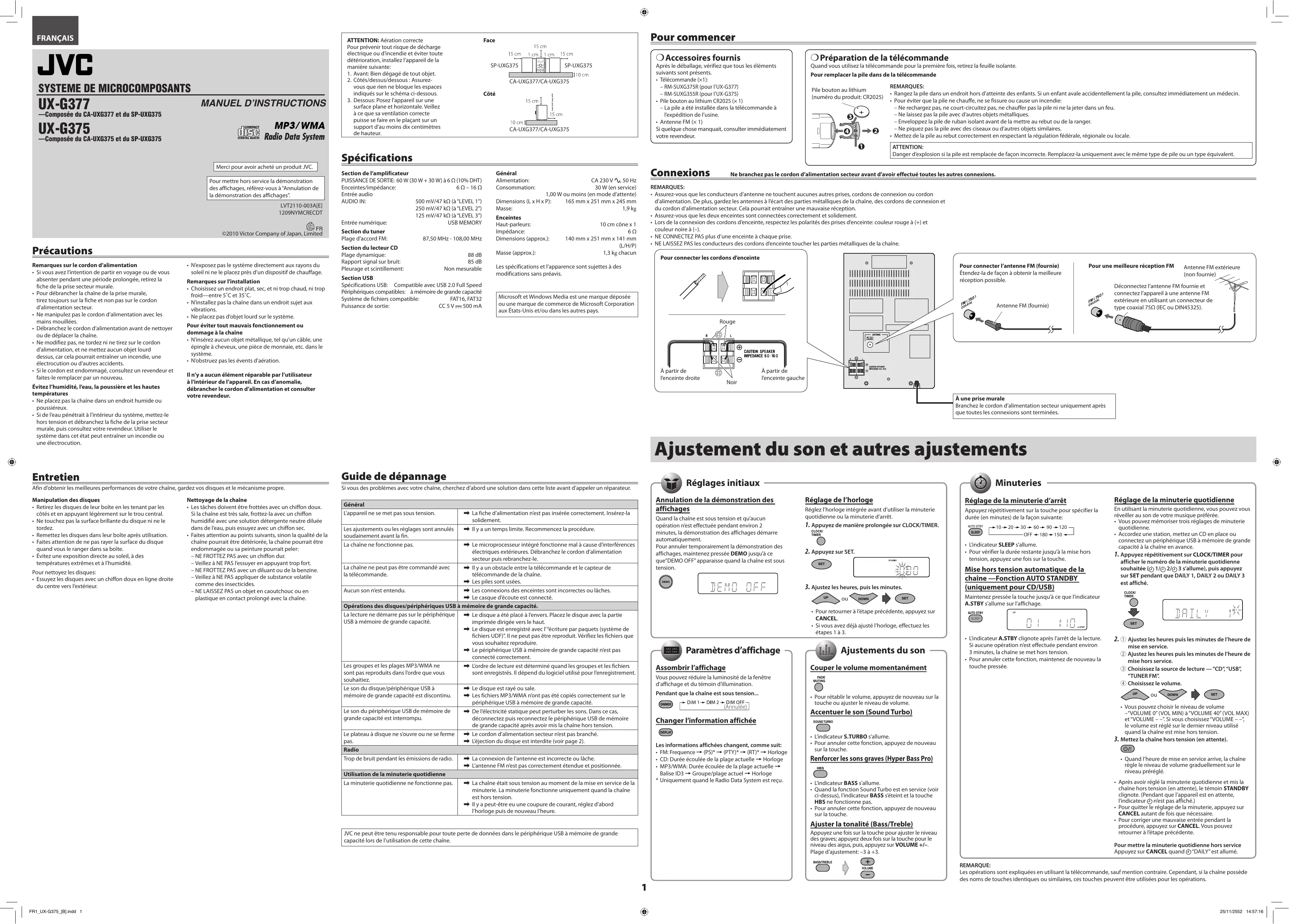 UX-G375 - Mini chaîne hi-fi JVC - Notice d'utilisation et mode d'emploi gratuit