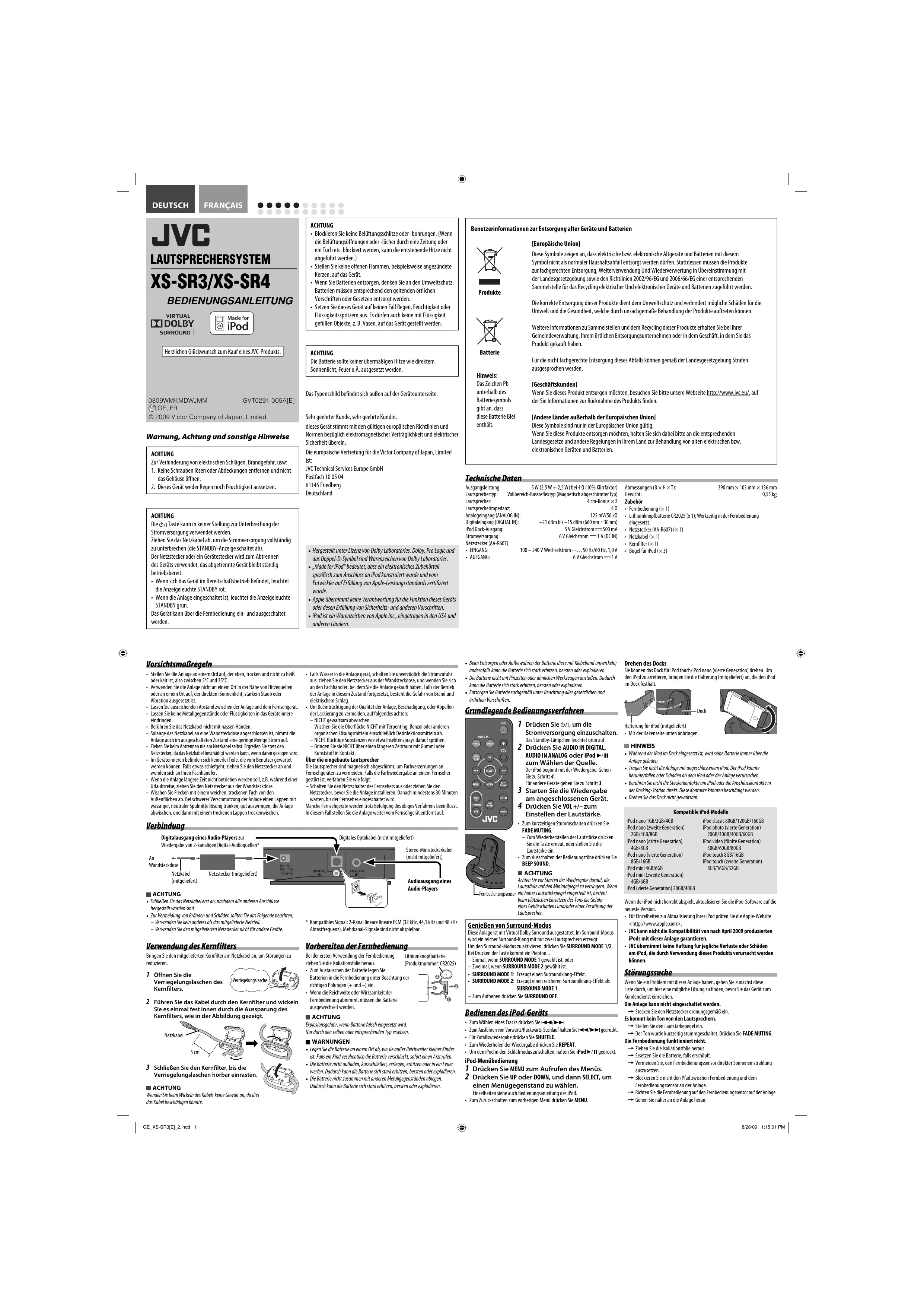 8/26/09 1:15:01 PM DEUTSCH FRANÇAIS ENCEINTE ACOUSTIQUE XS-SR3/XS-SR4
