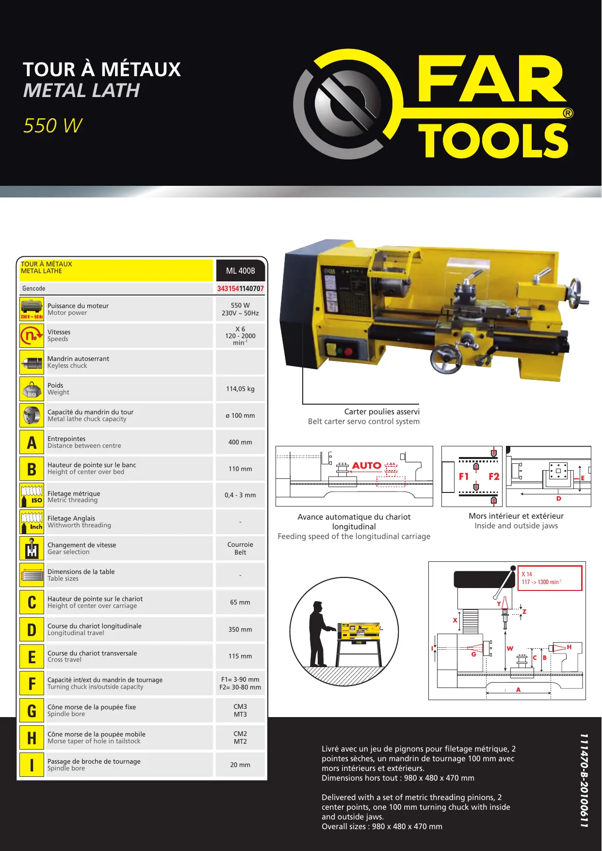 ML 400B - Tour à métaux FARTOOLS - Notice d'utilisation et mode d'emploi gratuit