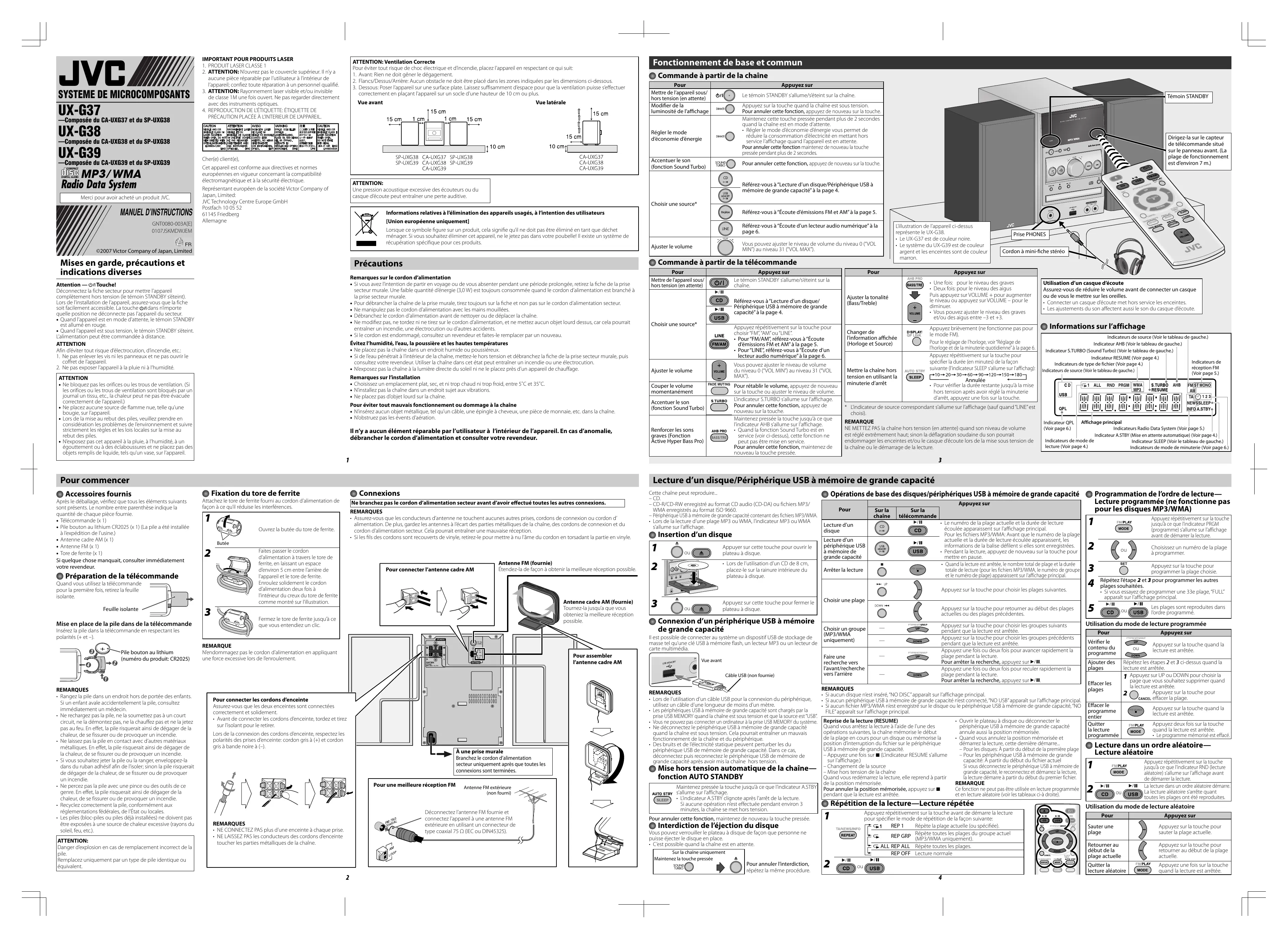 Téléchargez la notice de votre Système audio au format PDF gratuitement ! Retrouvez votre notice UX-G38 - JVC et reprennez votre appareil électronique en main. Sur cette page sont publiés tous les documents nécessaires à l'utilisation de votre appareil UX-G38 de la marque JVC.