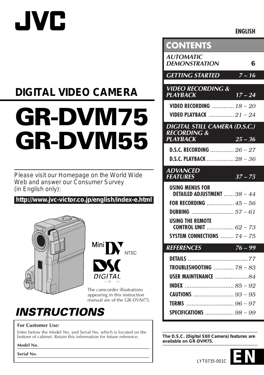 GR-DVM75U - Caméscope JVC - Notice d'utilisation et mode d'emploi gratuit
