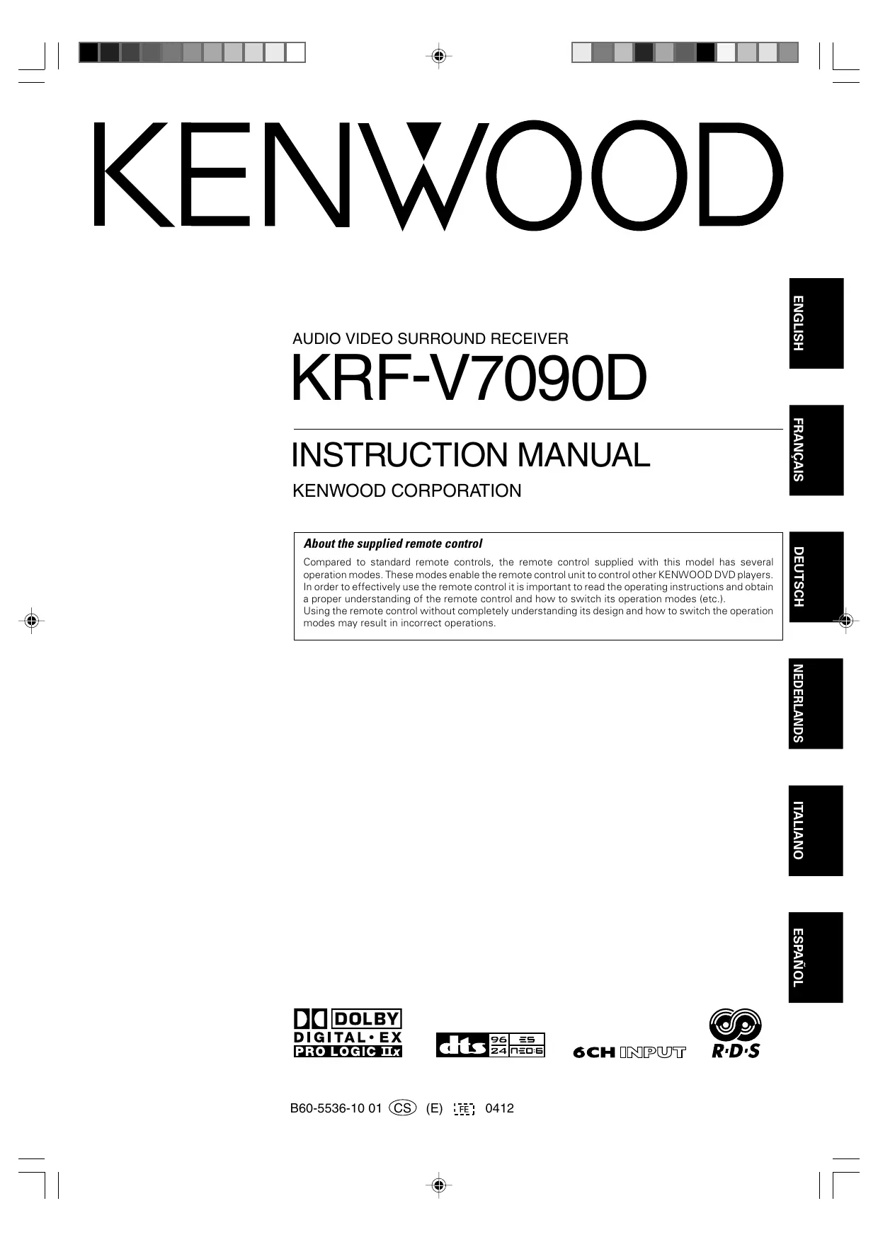 Retrouvez gratuitement la notice de l'appareil KRF-V7090D KENWOOD au format PDF.