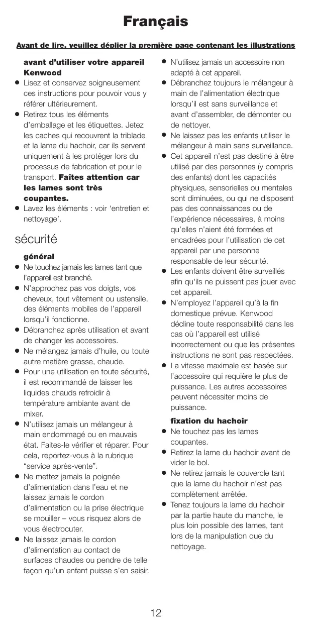 HB713M - Mixeur plongeant KENWOOD - Notice d'utilisation et mode d'emploi gratuit