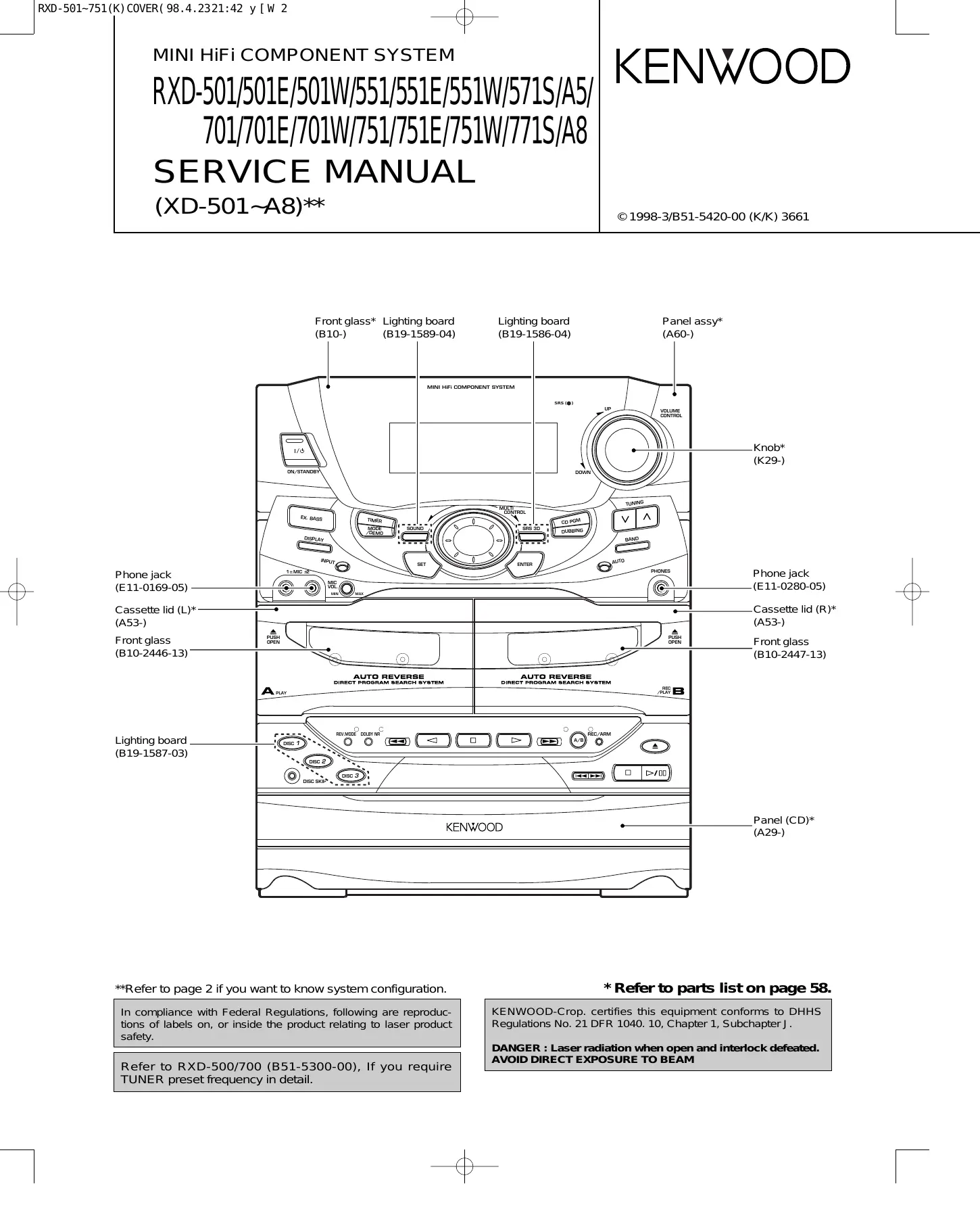 Retrouvez gratuitement la notice de l'appareil XD-501 KENWOOD au format PDF.