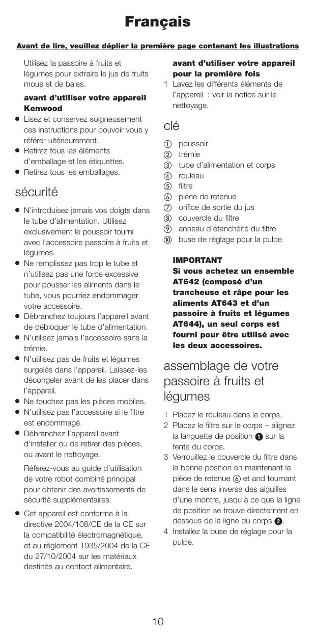 AT642 - Accessoire de cuisine KENWOOD - Notice d'utilisation et mode d'emploi gratuit