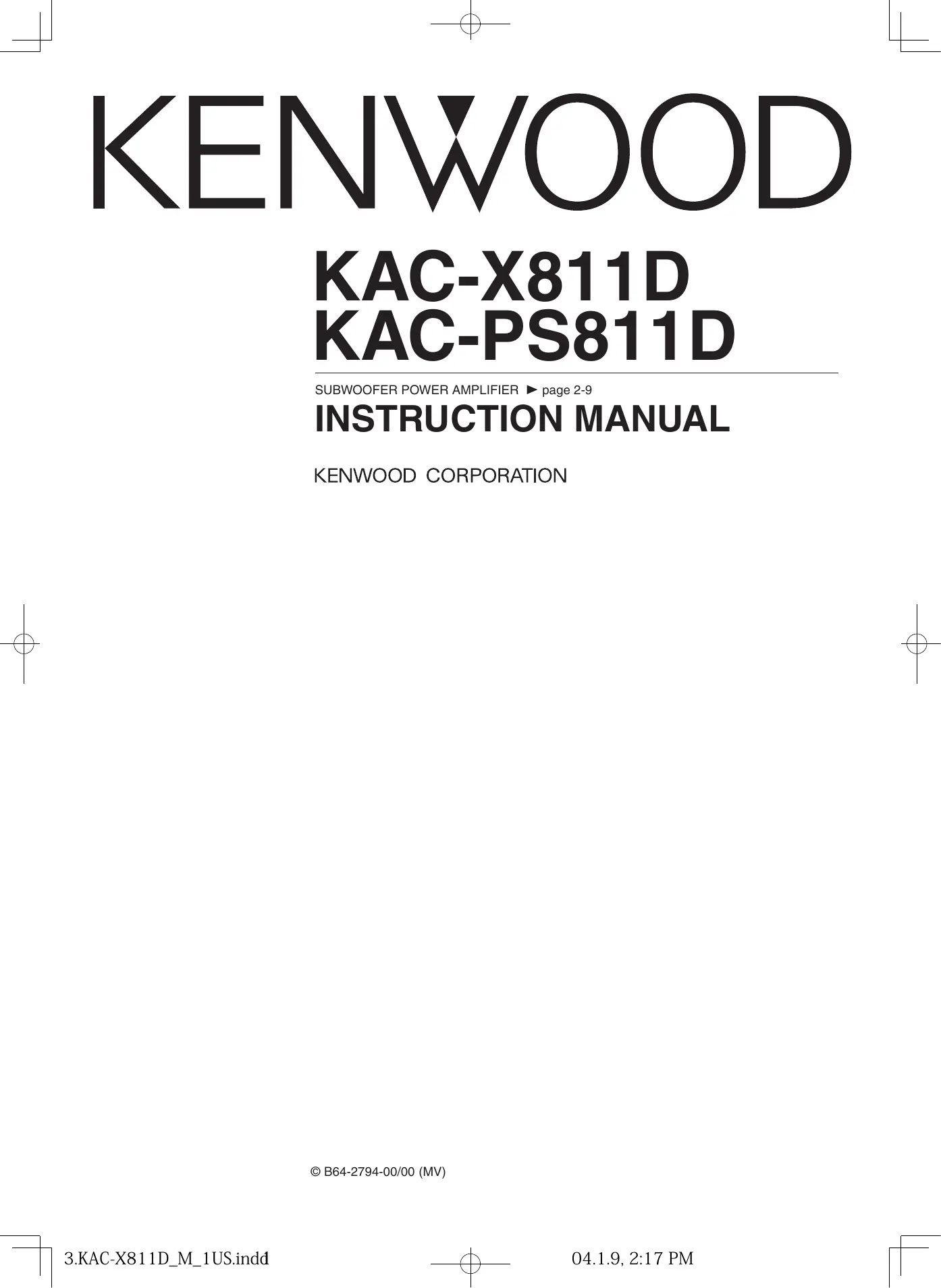 Retrouvez gratuitement la notice de l'appareil KAC-X811D KENWOOD au format PDF.