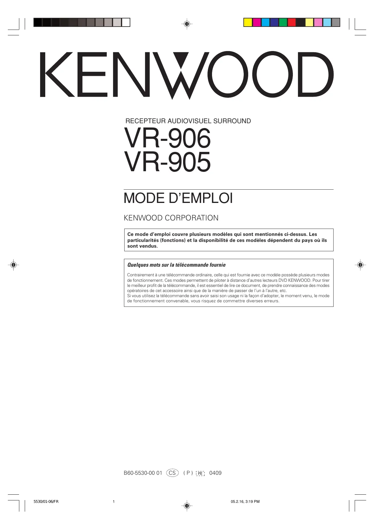 MODE D'EMPLOI VR-905 KENWOOD