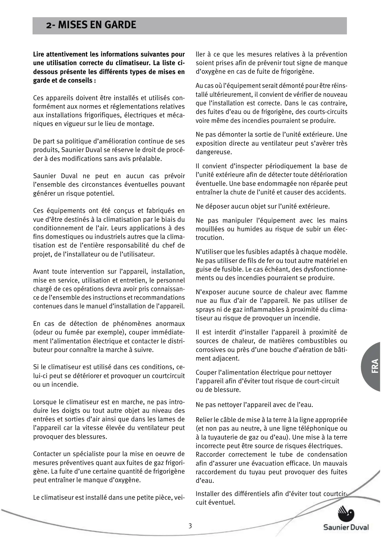 Saunier Duval ne peut en aucun cas prévoir l’ensemble des circonstances éventuelles pouvant générer un risque potentiel.