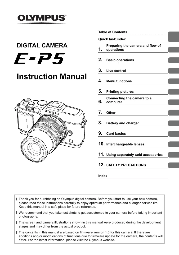 Téléchargez la notice de votre Appareil photo numérique au format PDF gratuitement ! Retrouvez votre notice E-P5 - OLYMPUS et reprennez votre appareil électronique en main. Sur cette page sont publiés tous les documents nécessaires à l'utilisation de votre appareil E-P5 de la marque OLYMPUS.