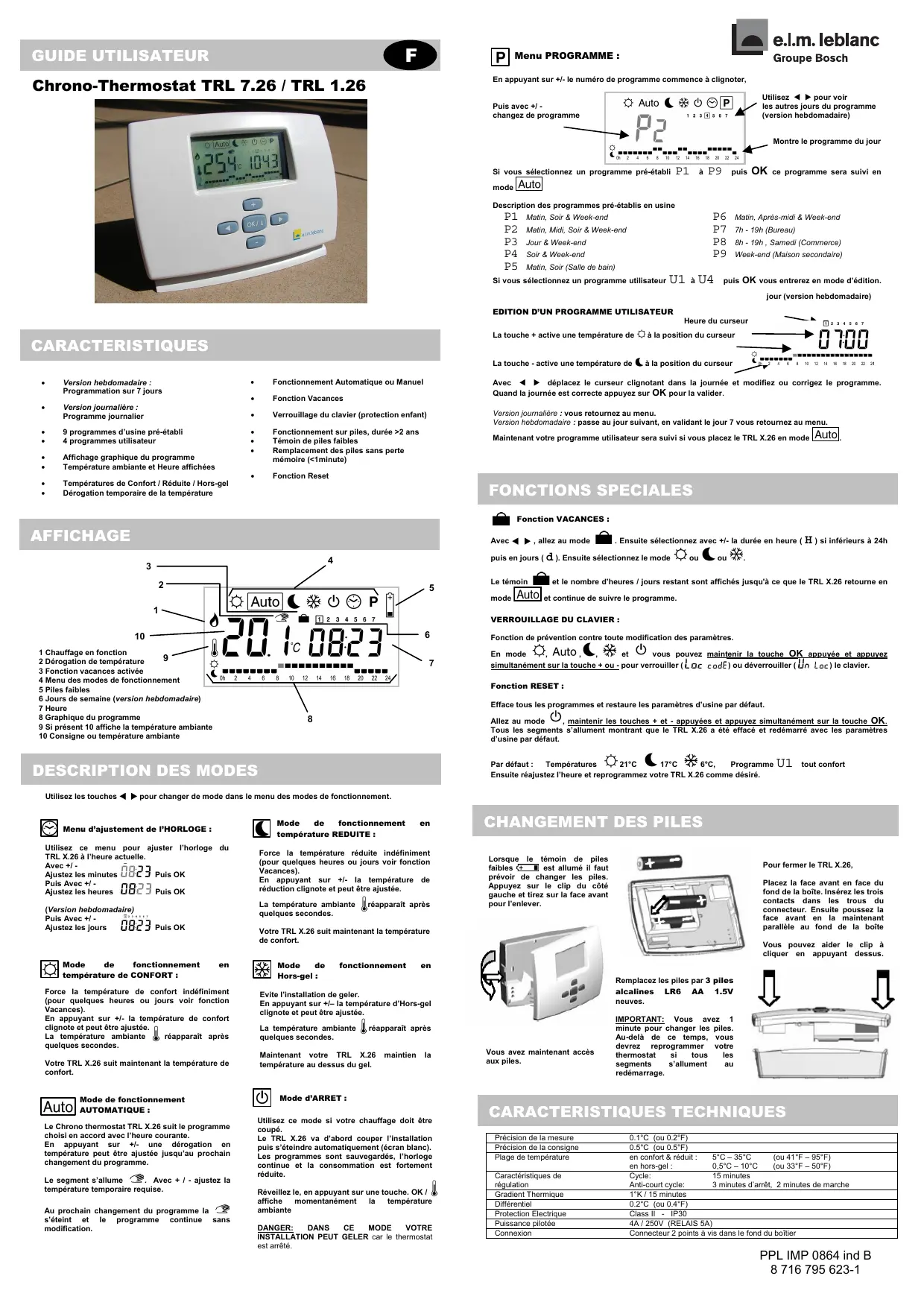 MODE D'EMPLOI TRL 1-26 ELM LEBLANC