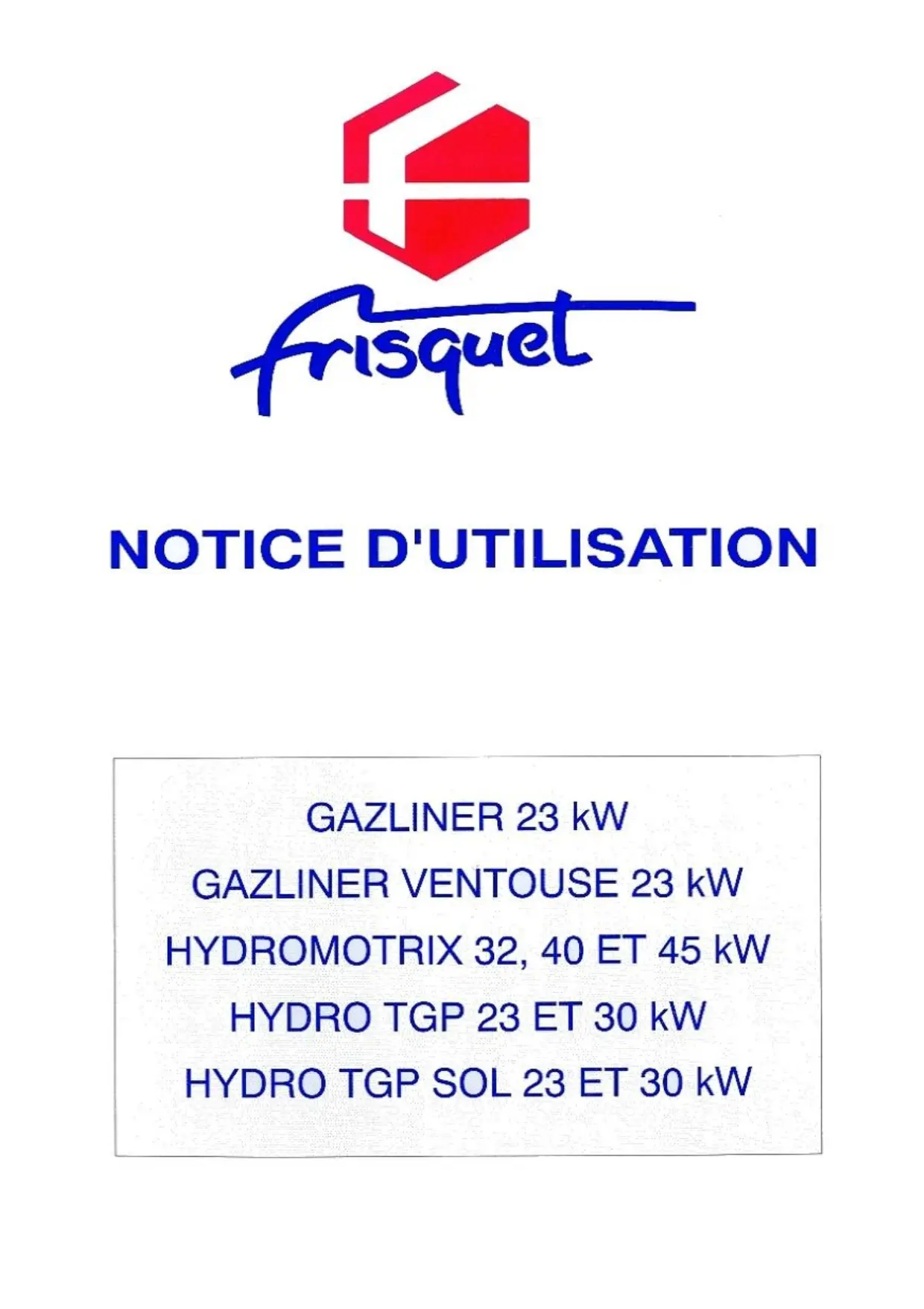 Retrouvez gratuitement la notice de l'appareil HYDROMOTRIX 32 KW FRISQUET au format PDF.