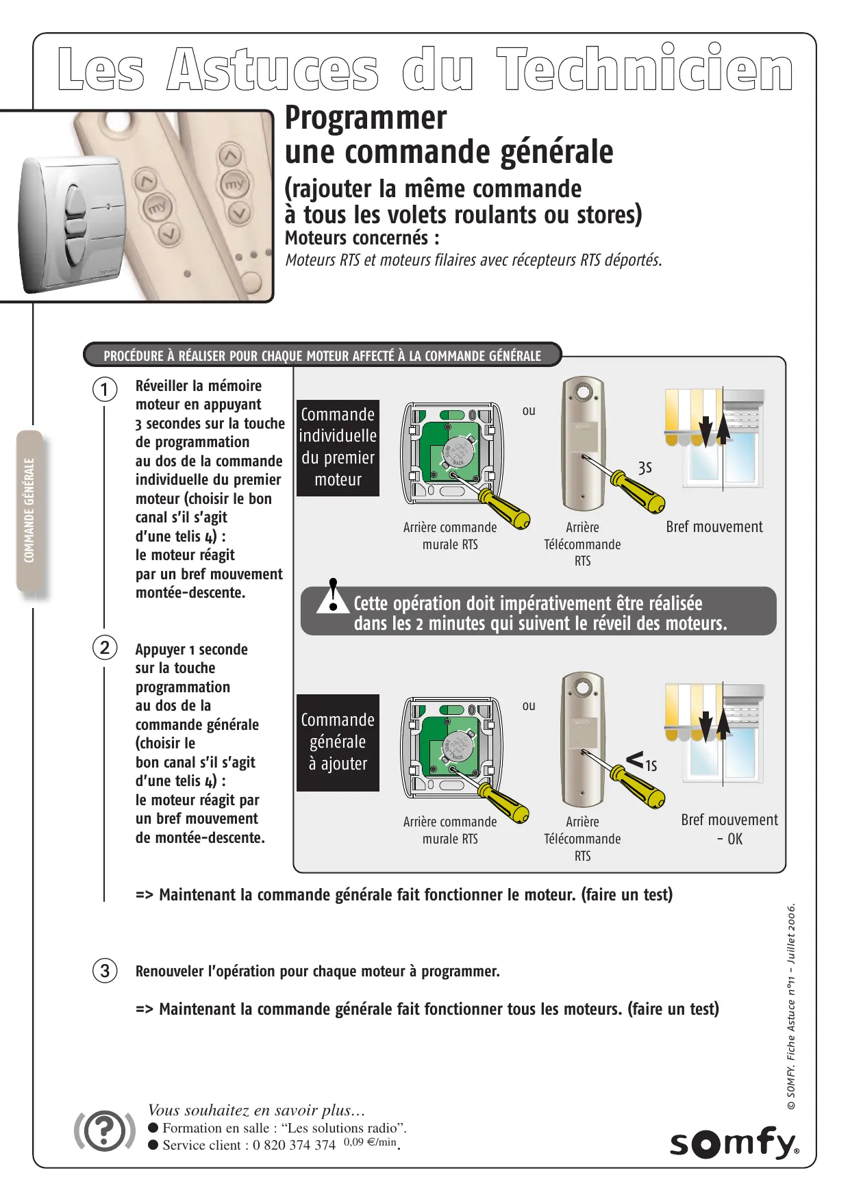 Vous souhaitez en savoir plus… ● Formation en salle : “Les solutions radio”. ● Service client : 0 820 374 374 0,09 €/min. © SOMFY. Fiche Astuce n°11 - Juillet 2006.