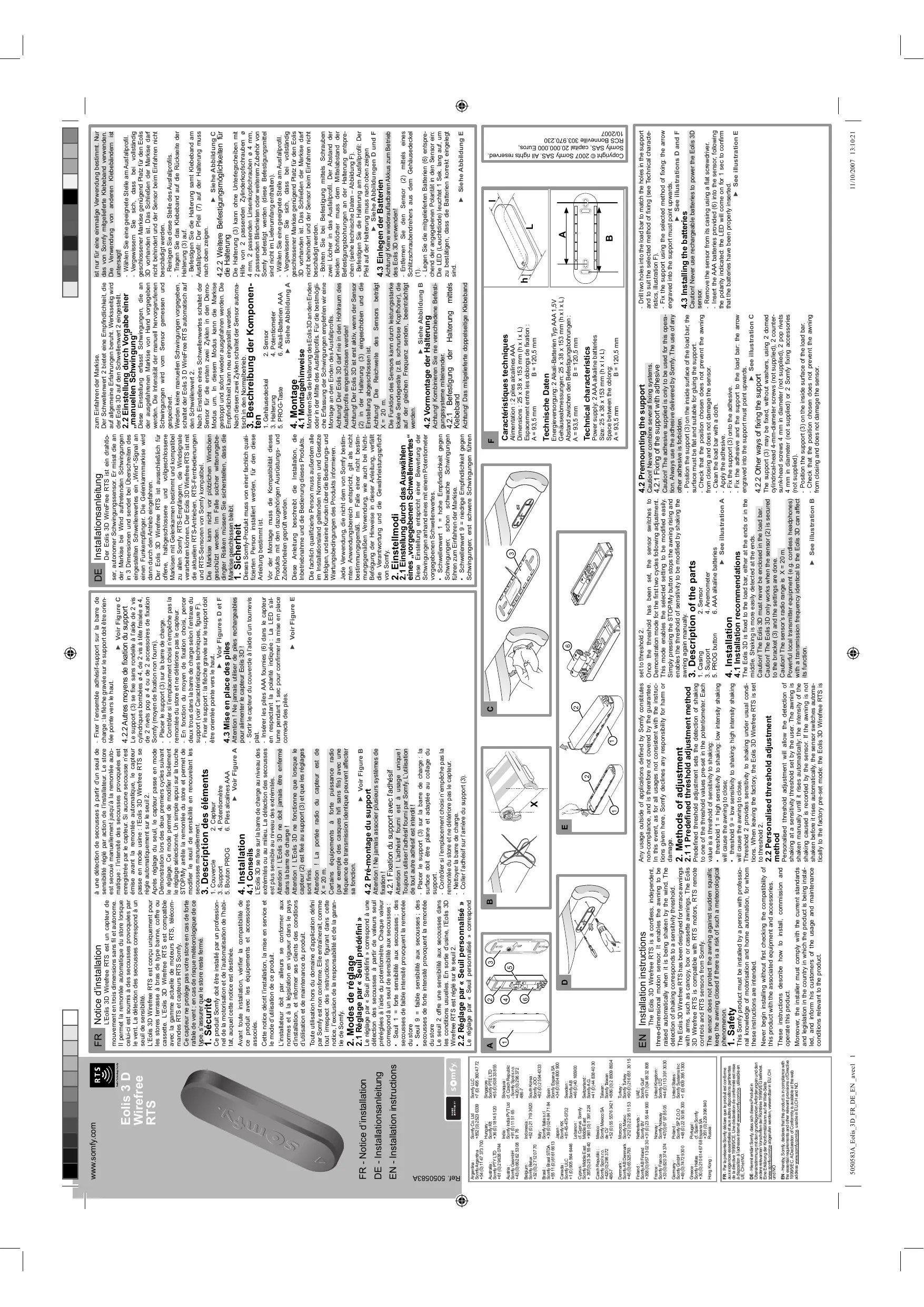Téléchargez la notice de votre Système de protection solaire au format PDF gratuitement ! Retrouvez votre notice EOLIS 3D - SOMFY et reprennez votre appareil électronique en main. Sur cette page sont publiés tous les documents nécessaires à l'utilisation de votre appareil EOLIS 3D de la marque SOMFY.