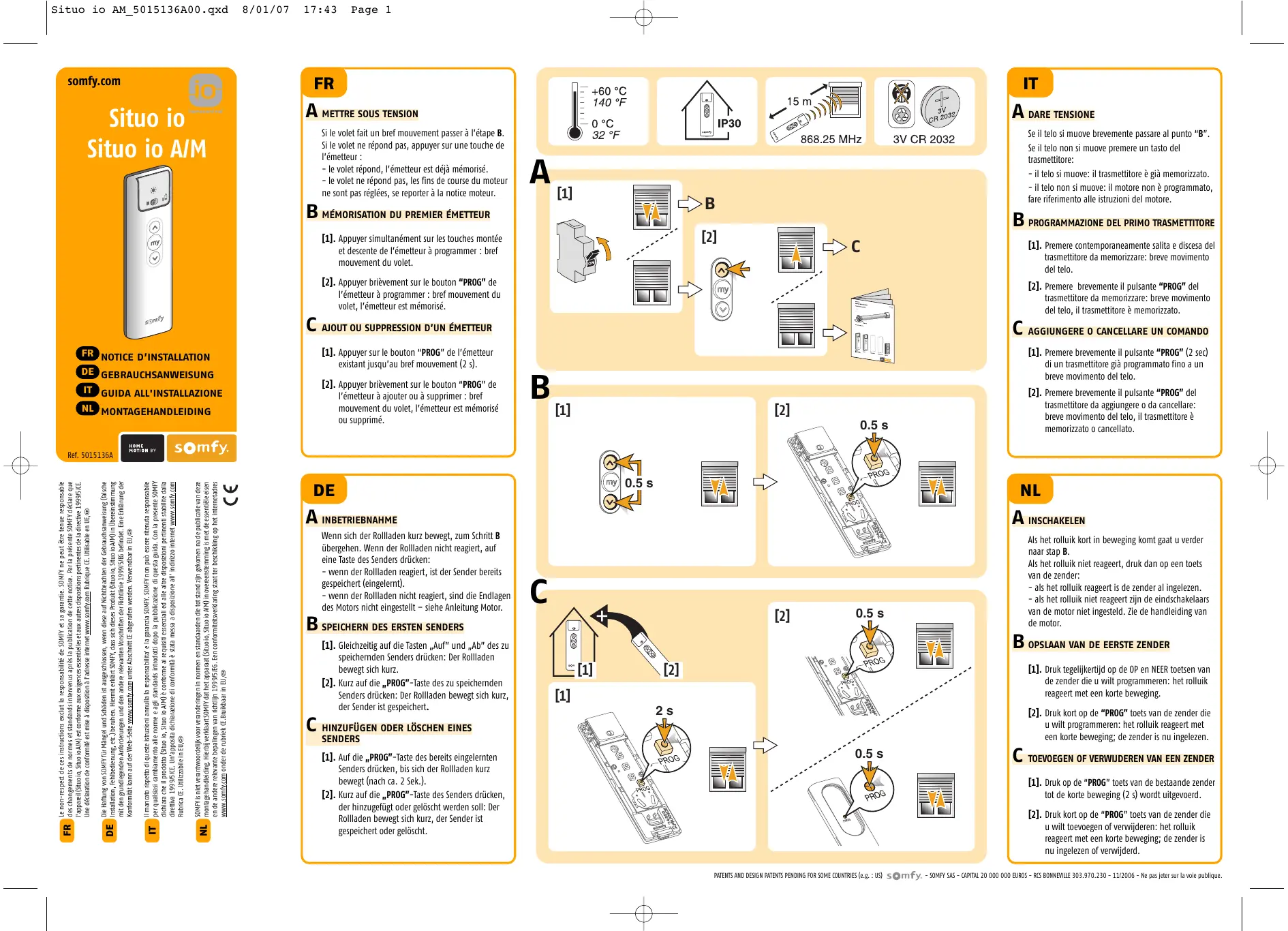 SITUO IO - Télécommande pour motorisation SOMFY - Notice d'utilisation et mode d'emploi gratuit