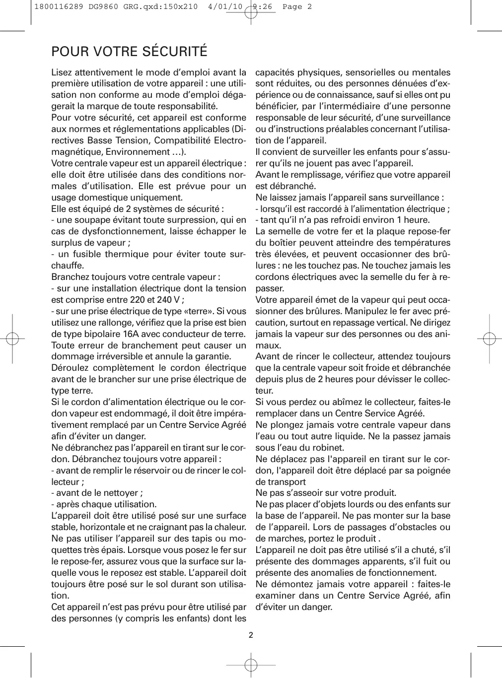 Retrouvez gratuitement la notice de l'appareil DG9860 LIBERTY PRESSING ROWENTA au format PDF.