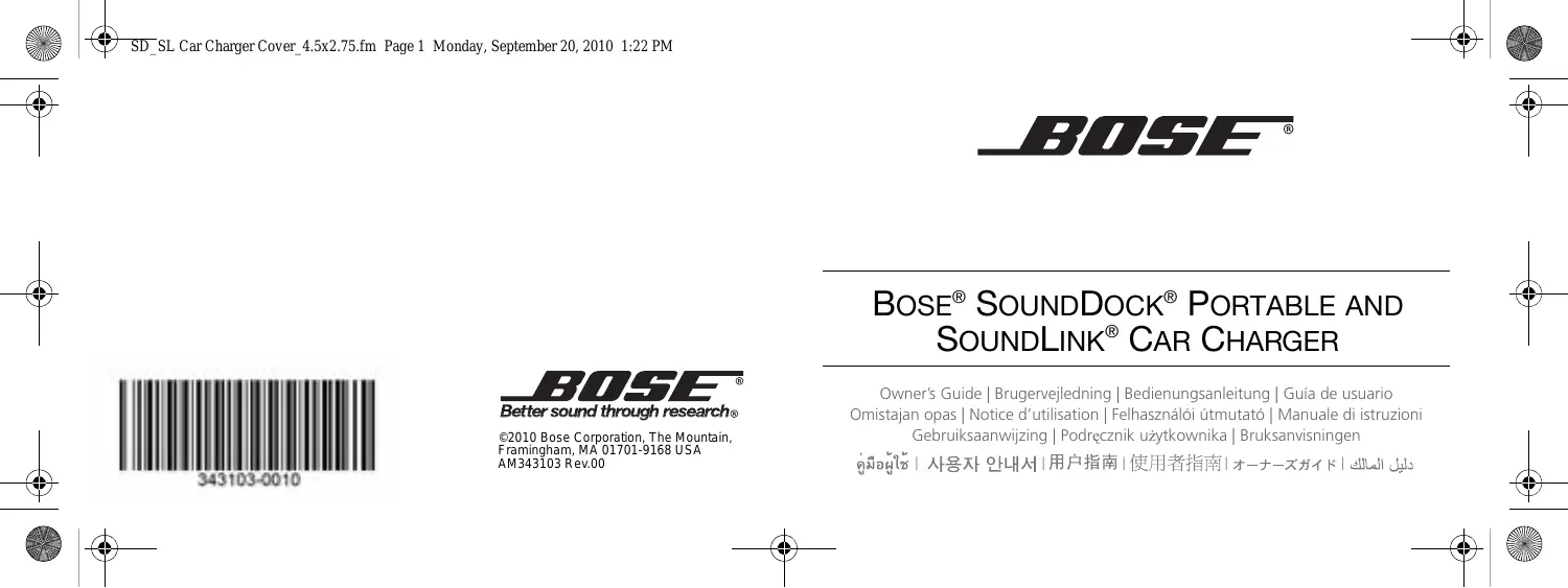 Cechargeurdevoitureestdestiné aux systèmes SoundDock® Portable et SoundLink®. Pour plus d’informations sur l’utilisation de ces produits, reportez-vous à leur mode d’emploi. Pour savoir comment contacter Bose, consultez la liste qui figure sur la carte de garantie. Si la diode en face avant de l’appareil est rouge et clignote, il est nécessaire de recharger la batterie. La recharge de la batterie peut nécessiter jusqu’à 10 heures (que l’appareil soit en lecture ou non). AVERTISSEMENT : Ne faites pas fonctionner votre SoundDock Portable ou votre SoundLink en conduisant. Toute distraction peut représenter un danger pour vous ou autrui. ATTENTION : L’utilisation du chargeur durant plus de quelques heures lorsque le moteur ne tourne pas peut entraîner une perte de puissance de la batterie, suivant sa capacité à tenir la charge. Après 6 heures de recharge ou de lecture pendant que le chargeur est connecté à la batterie du véhicule, il est recommandé de faire tourner le moteur une dizaine de minutes pour chaque heure de lecture à venir.