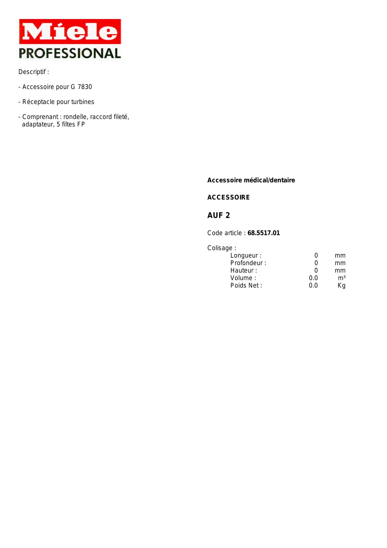 AUF 2 DESCRIPTIF - Accessoire pour appareil professionnel MIELE - Notice d'utilisation et mode d'emploi gratuit