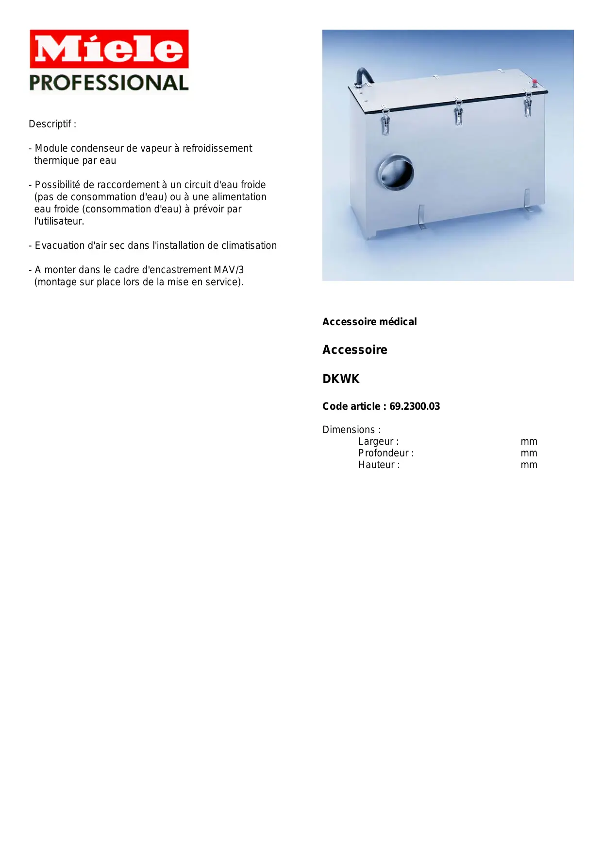 DKWK DESCRIPTIF - Climatiseur MIELE - Notice d'utilisation et mode d'emploi gratuit