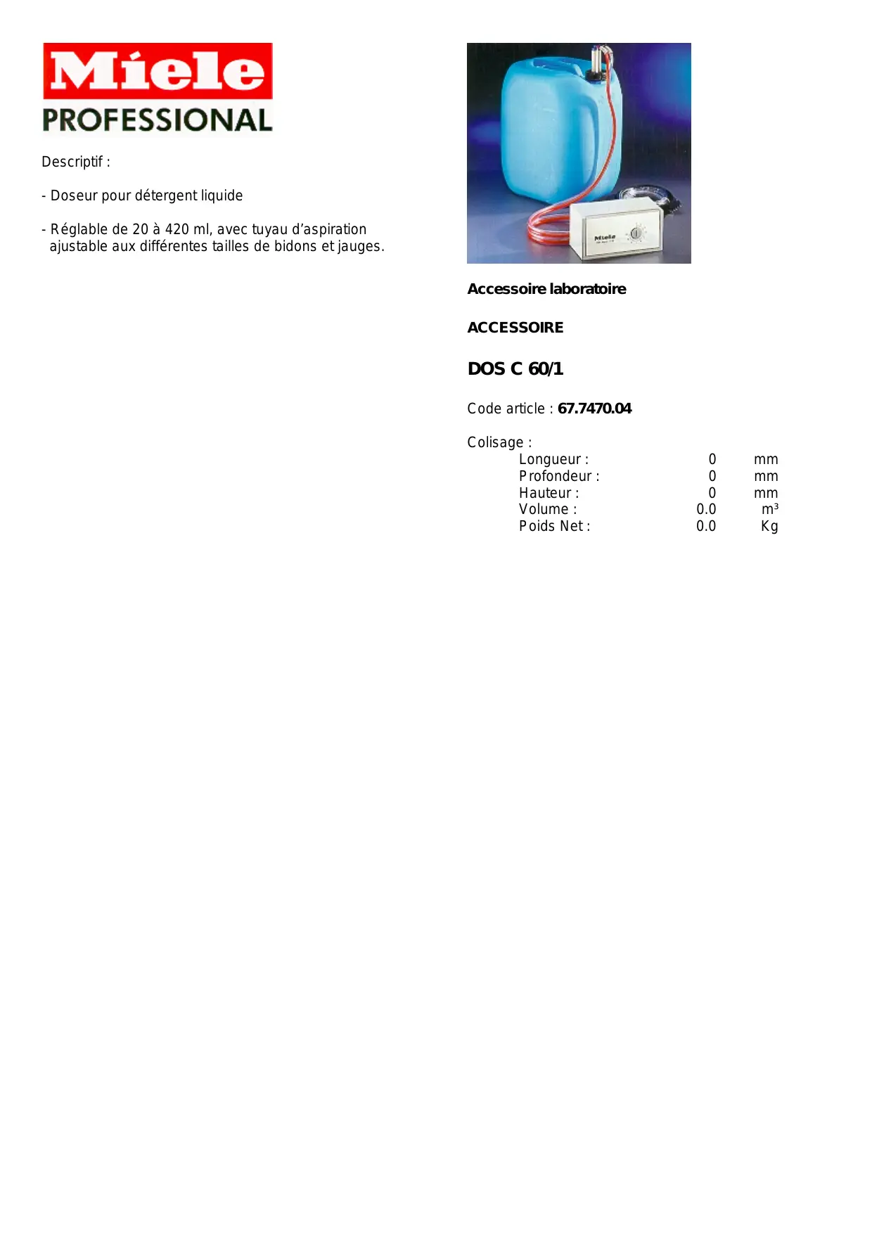 DOS C 60 DESCRIPTIF - Distributeur de liquide MIELE - Notice d'utilisation et mode d'emploi gratuit
