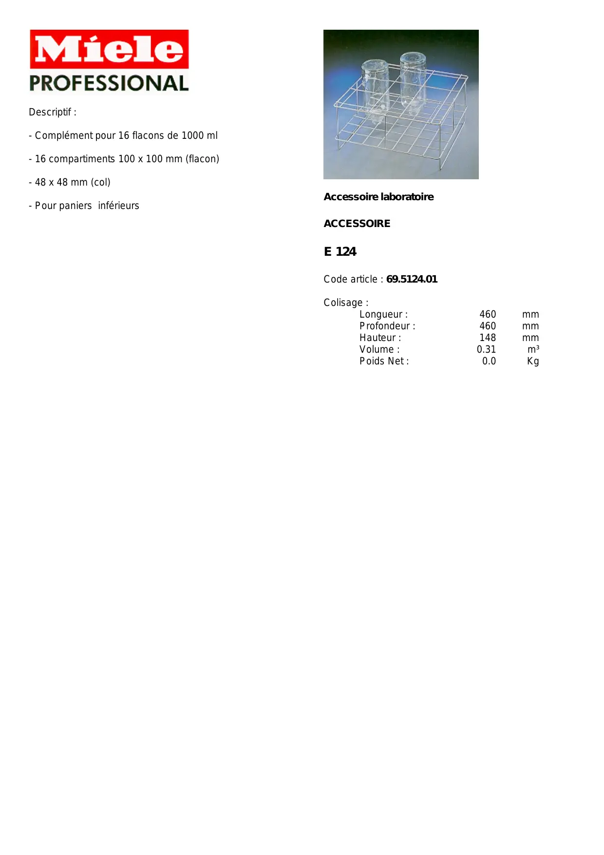 E 124 DESCRIPTIF - Matériel de laboratoire MIELE - Notice d'utilisation et mode d'emploi gratuit