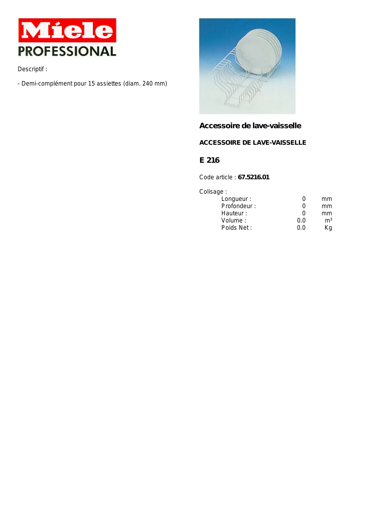 E 216 DESCRIPTIF - Accessoire pour lave-vaisselle MIELE - Notice d'utilisation et mode d'emploi gratuit