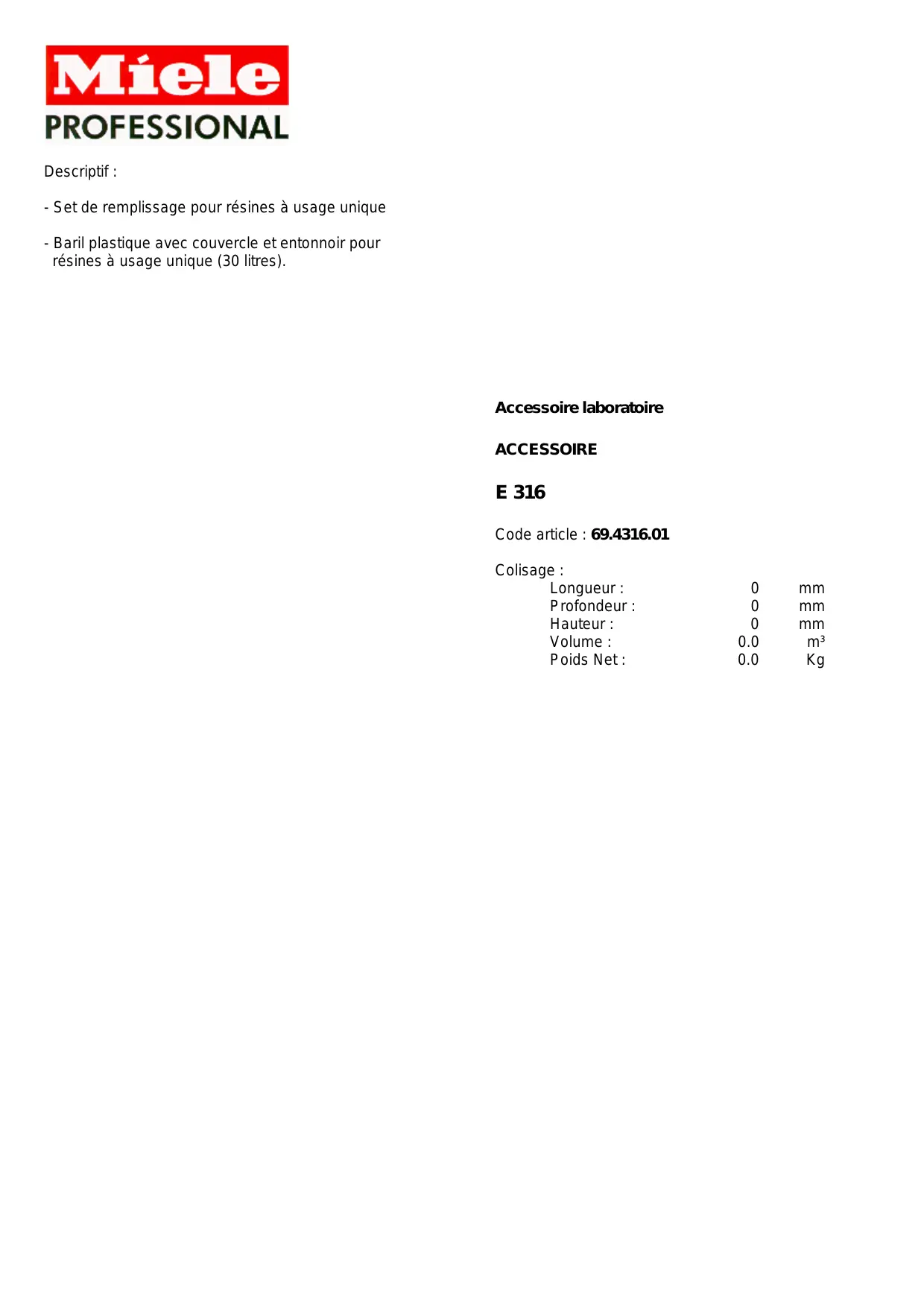 MIELE et reprennez votre appareil électronique en main. Sur cette page sont publiés tous les documents nécessaires à l'utilisation de votre appareil E 316 DESCRIPTIF de la marque MIELE.