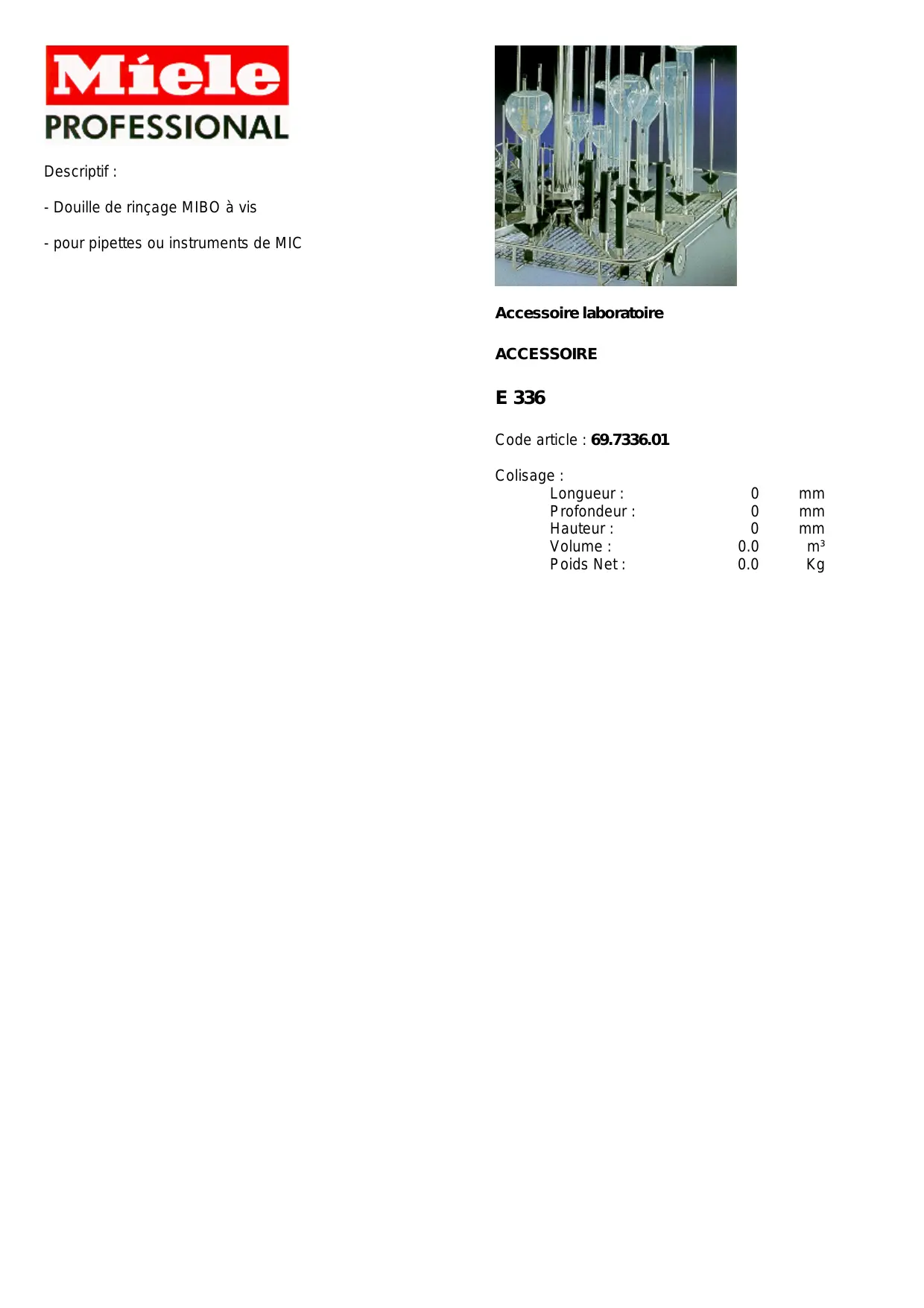 E 336 DESCRIPTIF - Matériel de laboratoire MIELE - Notice d'utilisation et mode d'emploi gratuit