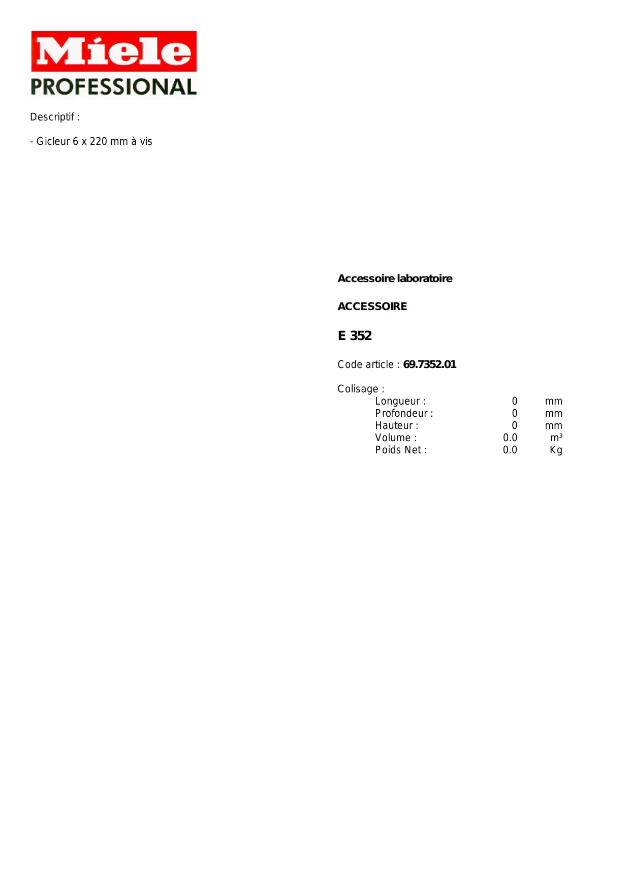 E 352 DESCRIPTIF - Accessoire pour appareil professionnel MIELE - Notice d'utilisation et mode d'emploi gratuit