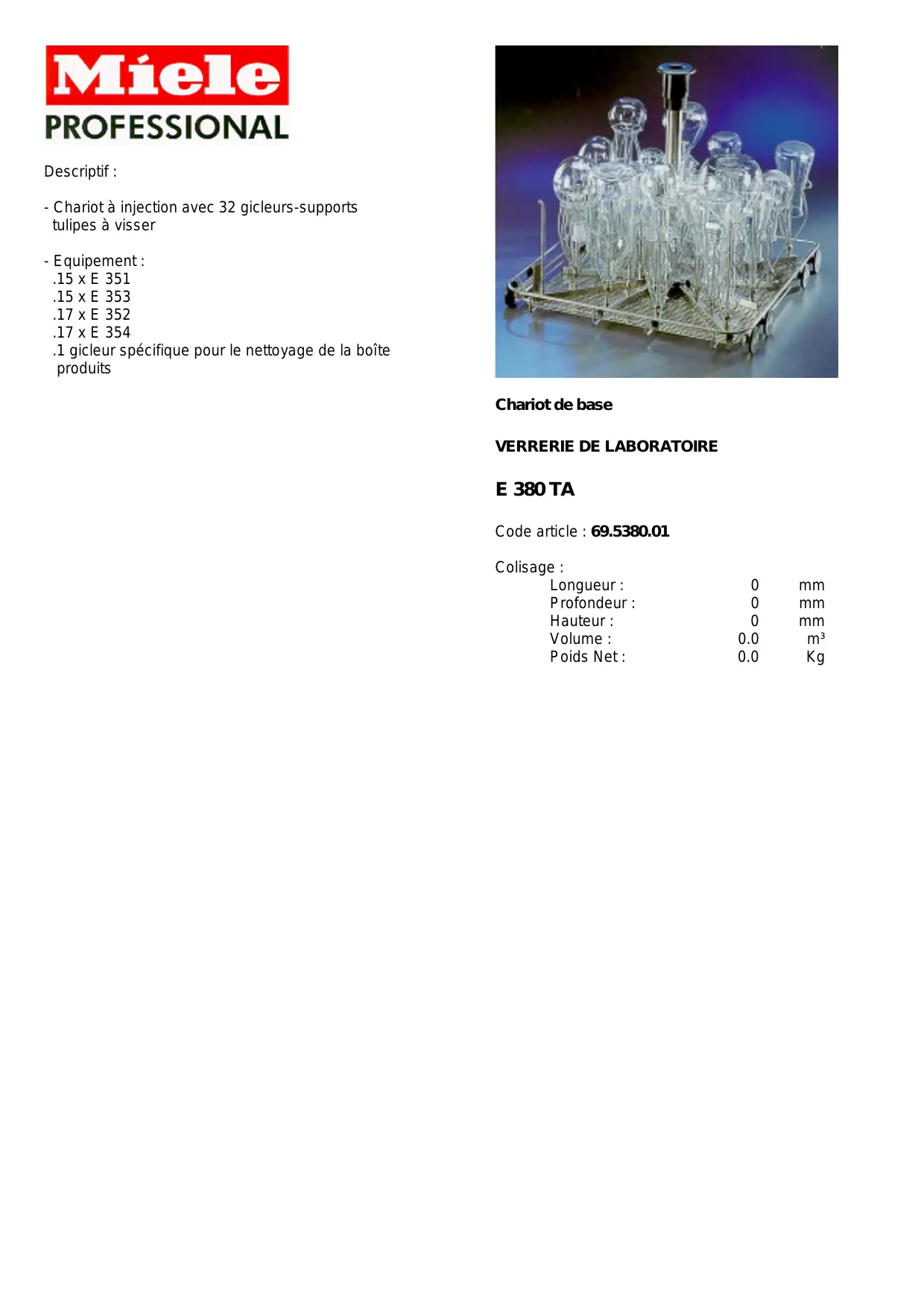 E 380 DESCRIPTIF - Matériel de laboratoire MIELE - Notice d'utilisation et mode d'emploi gratuit