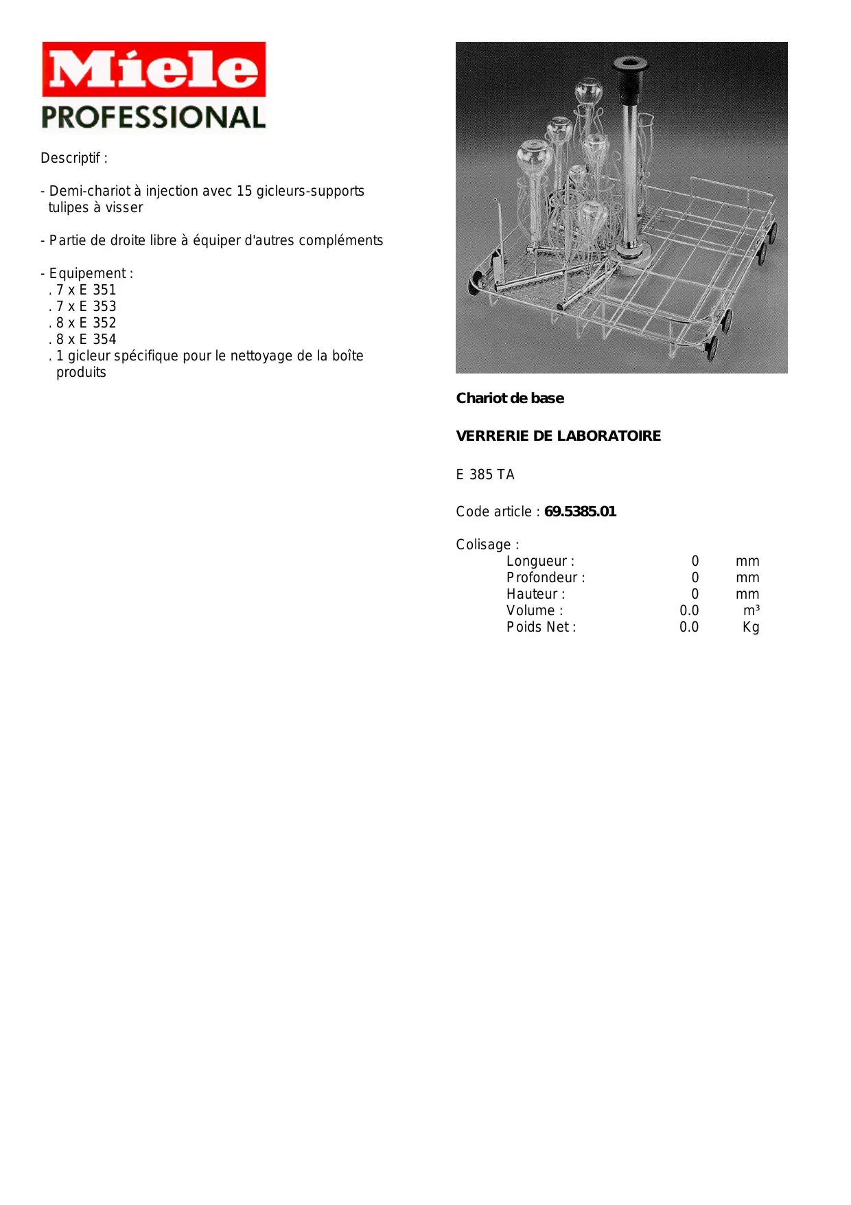 E 385 DESCRIPTIF - Chariot de nettoyage professionnel MIELE - Notice d'utilisation et mode d'emploi gratuit