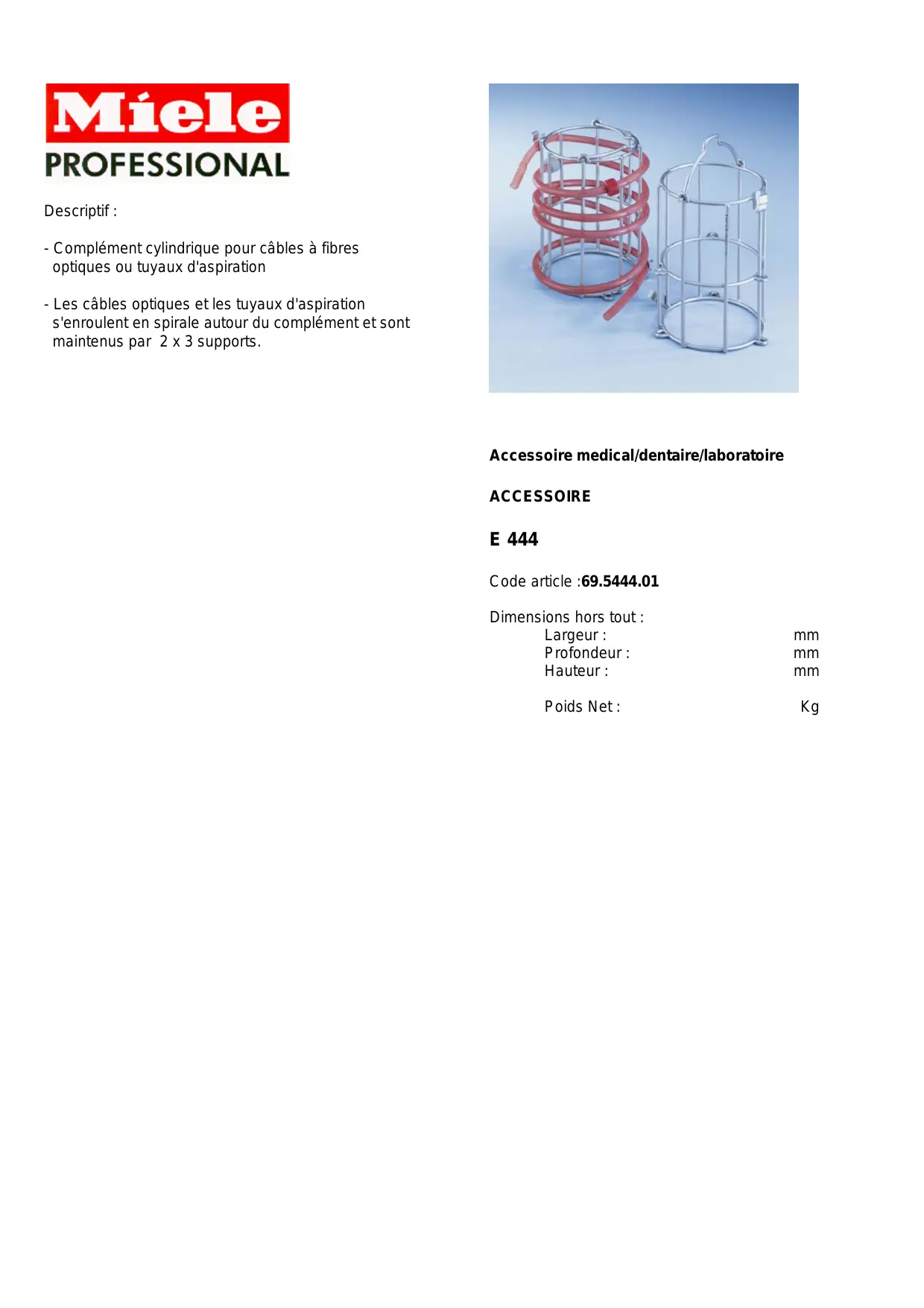 E 444 DESCRIPTIF - Accessoire d'appareil professionnel MIELE - Notice d'utilisation et mode d'emploi gratuit